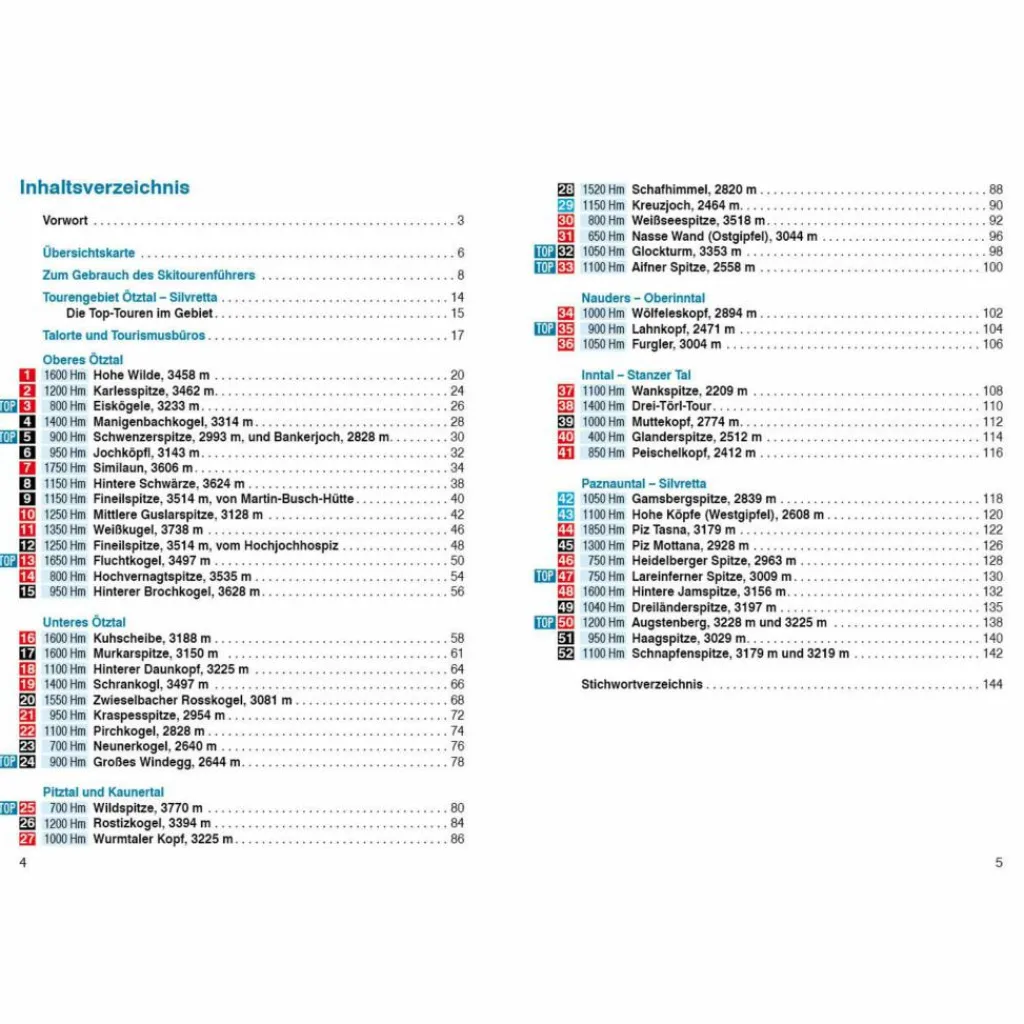 Allein 30 der im Buch vorgestellten Skitouren führen auf Gipfel im Dreitausender-Bereich – über Gletscherhänge, mit fantastischen Aussichten und langen Abfahrten. Viele berühmte Berge finden sich in der Auswahl, wie die Wildspitze und der Augstenberg. Auch so manche Geheimtipps, die selbst unter einheimischen Skitourengehern wenig bekannt sind, sind dabei. Vor allem erfahrene Skibergsteiger kommen im Ötztal und in der Silvretta voll auf ihre Kosten. Doch auch Genießer und Tourengeher, die nicht so häufig zu den Fellen greifen, finden in diesem Buch viele reizvolle Tourenvorschläge.