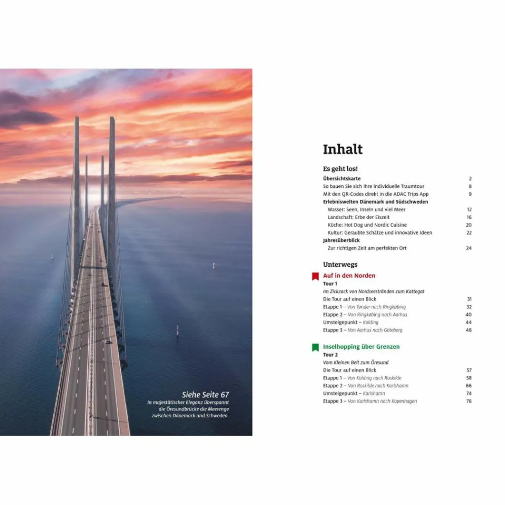 Fünf Touren führen durch Dänemark und Südschweden, alle lassen sich nach Belieben kombinieren – dank einfacher Umsteige-Punkte auf allen Strecken und der großen Planungskarte für den optimalen Überblick. Ein Reiseführer-Erlebnis, das es so noch nicht gegeben hat. Mit Experten-Tipps des Autors für besondere Erlebnisse am Wegesrand und QR-Code-Einbindung der beliebten ADAC Trips APP für noch mehr Reise-Erlebnisse!