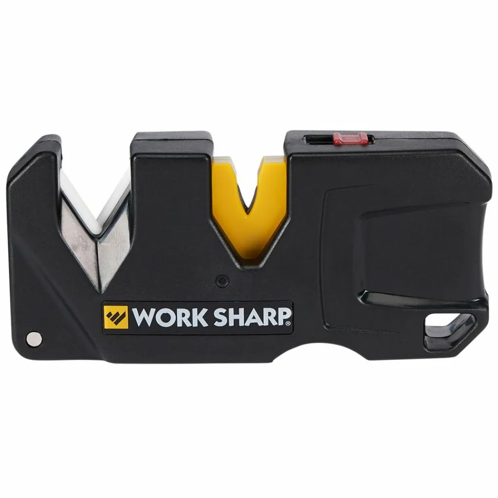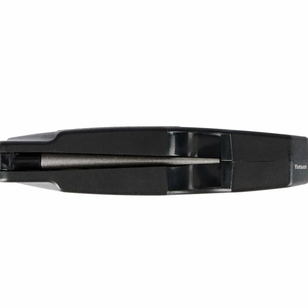 Der handliche Pivot Plus Knife Sharpener ist das richtige Tool, um dein Messer unterwegs schnell zu schärfen. Ausgestattet mit je einem V-förmigen Karbid- und Keramikstein sowie einem Diamantschärfer.