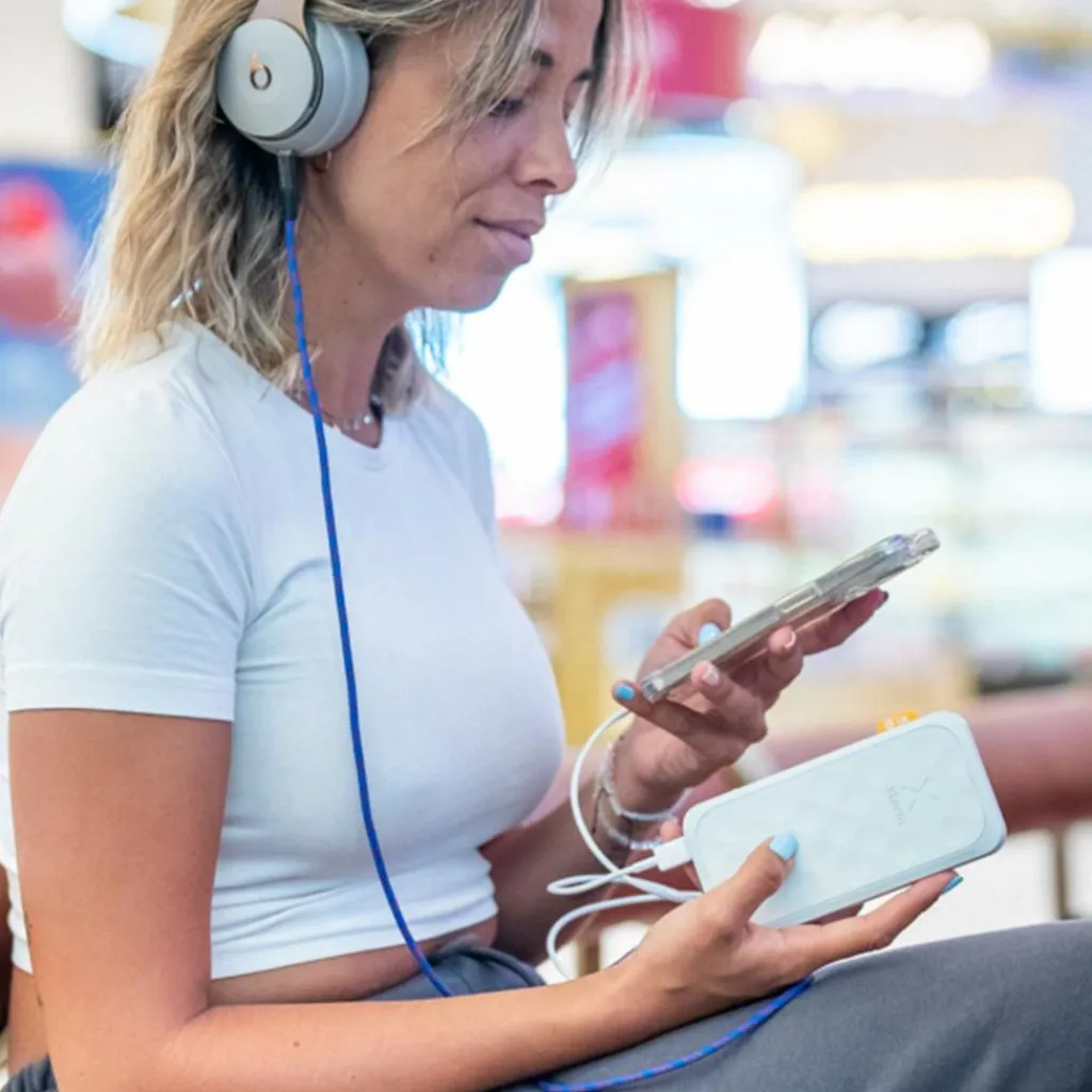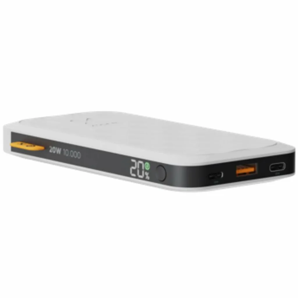 Die handliche Powerbank bietet bis zu 20 W Power am USB-C-Ausgang. Insgesamt stehen drei Anschlüsse zur Verfügung: Neben dem leistungsstarken 20-W-USB-C-PD-Anschluss gibt es einen zusätzlichen 18-W-USB-C-Anschluss und einen 18-W-USB-A-Anschluss. Alle drei Ladeplätze können einzeln oder gleichzeitig genutzt werden.
