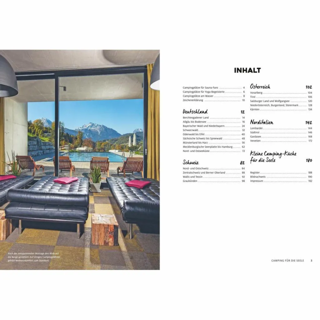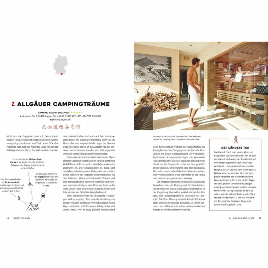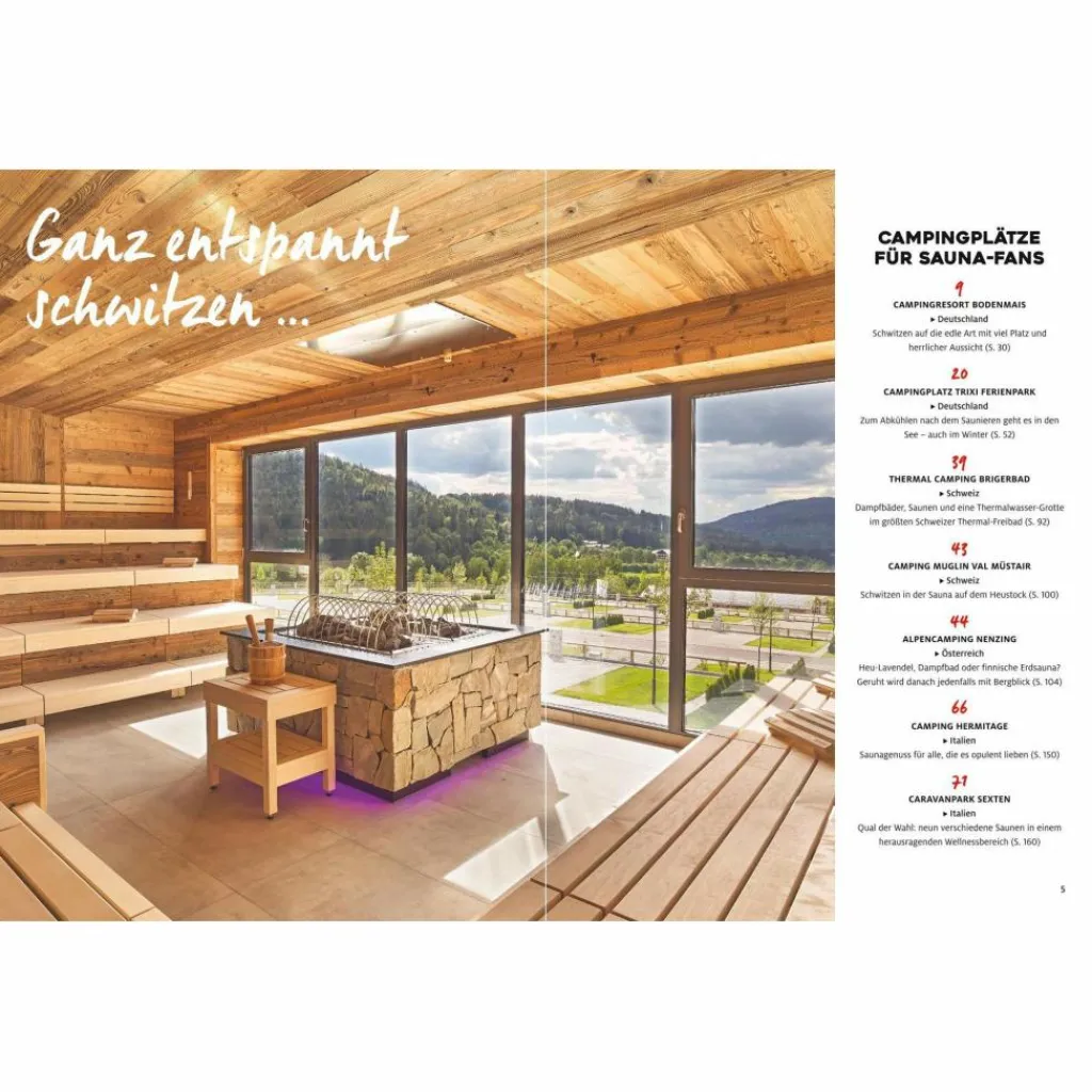 Endlich ausspannen! Wellness mit Blick auf die Berge. Der herrliche Pool direkt am Platz, die Sauna im Grünen mit Blick auf den See. Auf diesen Plätzen wird Wohlfühlen ganz groß geschrieben. Übernachtet wird bequem im eigenen Camper – oder ausnahmsweise doch lieber im luxuriösen Baumhaus? Denn auch das gibt es auf den Plätzen, die dieser Band vorstellt immer wieder: luxuriös schlafen in ausgefallenen Mietunterkünfte mit Blick direkt in den Sternenhimmel.