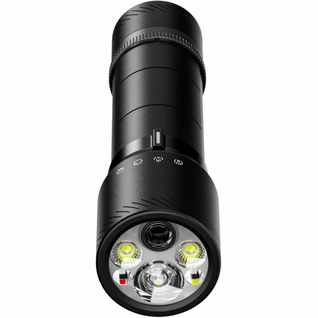 Die ZB6T verfügt über eine Quattro Functional Optik, die vier unterschiedliche Lichtkegel ohne bewegliche Teile ermöglicht. Durch Drehen des seitlichen Focus-Switch wählst du Fernlicht, Flutlicht, Leselicht oder Rotlicht bereits vor dem Einschalten aus.