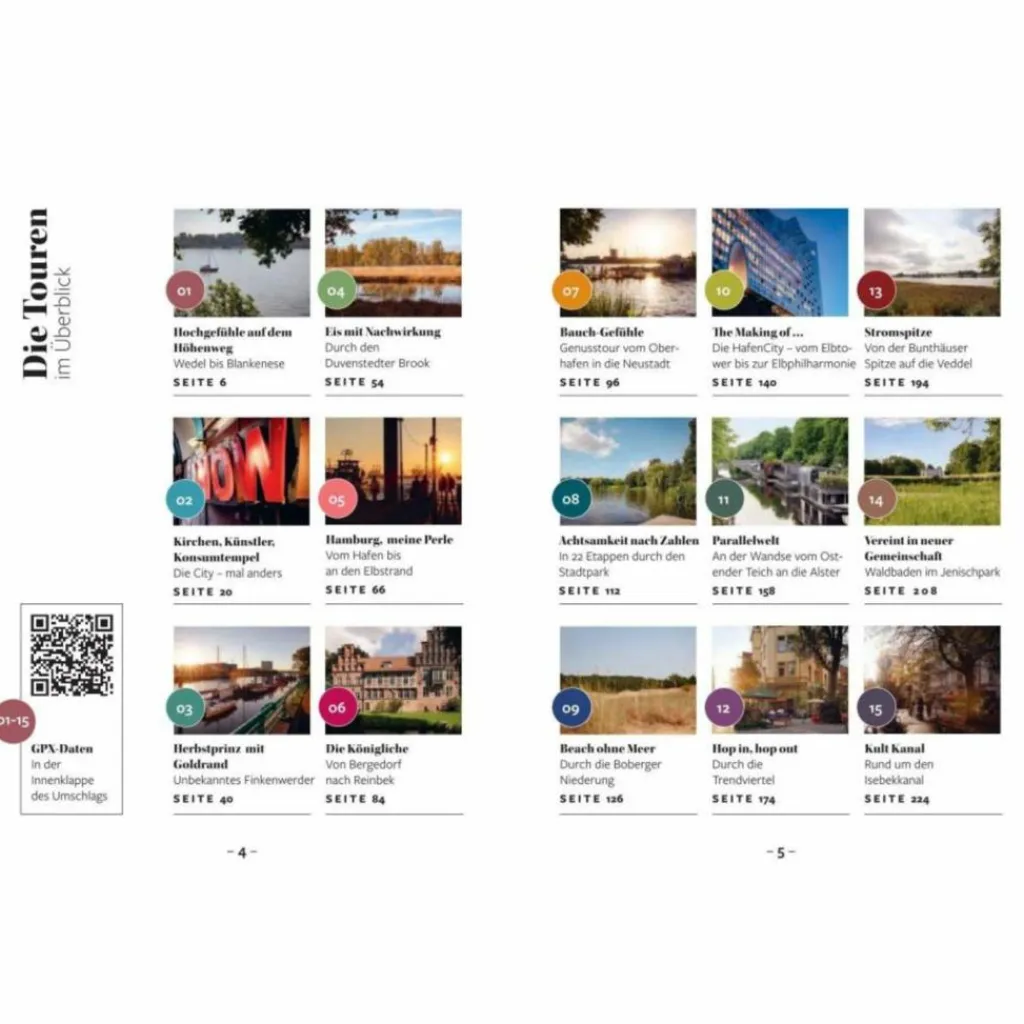 Die Touren führen zu den schönsten Sehenswürdigkeiten der »Perle«: zur »Elphi«, zum »Michel« und nach »Pauli«. Sie bringen uns aber auch an weniger bekannte Ecken, wenn wir der Wandse folgen, von Schloss zu Schloss flanieren oder vor Palmen stehen. Und ganz nebenbei tun wir etwas für unsere Gesundheit. Also auf nach Hamburg!