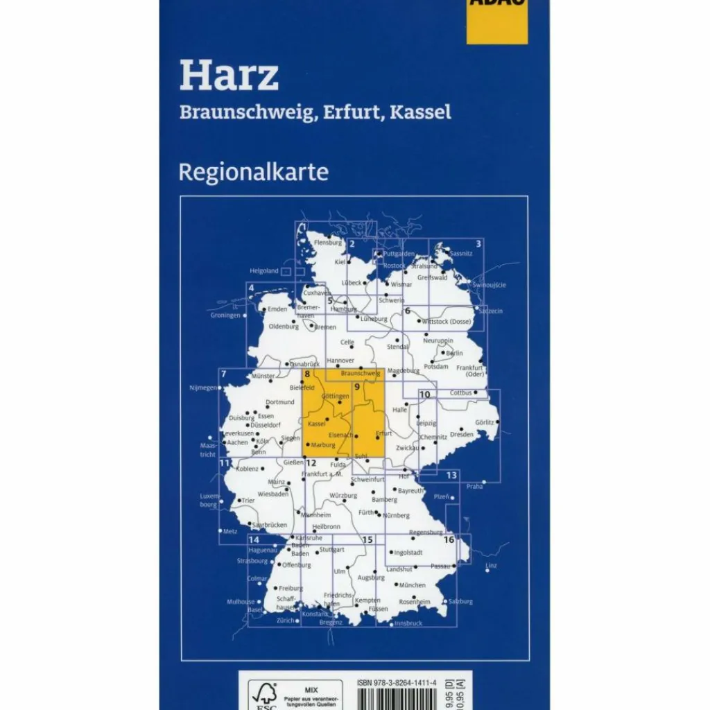 ADAC REGIONALKARTE BLATT 8 HARZ, BRAUNSCHWEIG, ERFURT, KASS – Straßenkarte^ Straßenkarten|Straßenkarten