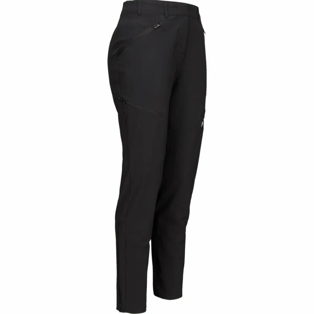 Die Innenseite ist leicht aufgebürstet und spendet dadurch mehr Wärme. So eignet sich die Hose optimal für ambitionierte Berg- und Trekkingtouren an kühleren Tagen. Außerdem liegt sie durch die aufgeraute Struktur besonders angenehm auf der Haut. Die Taschen sind mit einem weichen Microfleece-Futter an der äußeren Seite ausgestattet und bieten kalten Händen einen gemütlichen Platz zum Aufwärmen. Die Beinabschlüsse lassen sich in der Weite regulieren und somit an verschiedenes Schuhwek anpassen. Der Hosenbund ist im hinteren Teil elastisch und liegt dadurch gut am Rücken an.