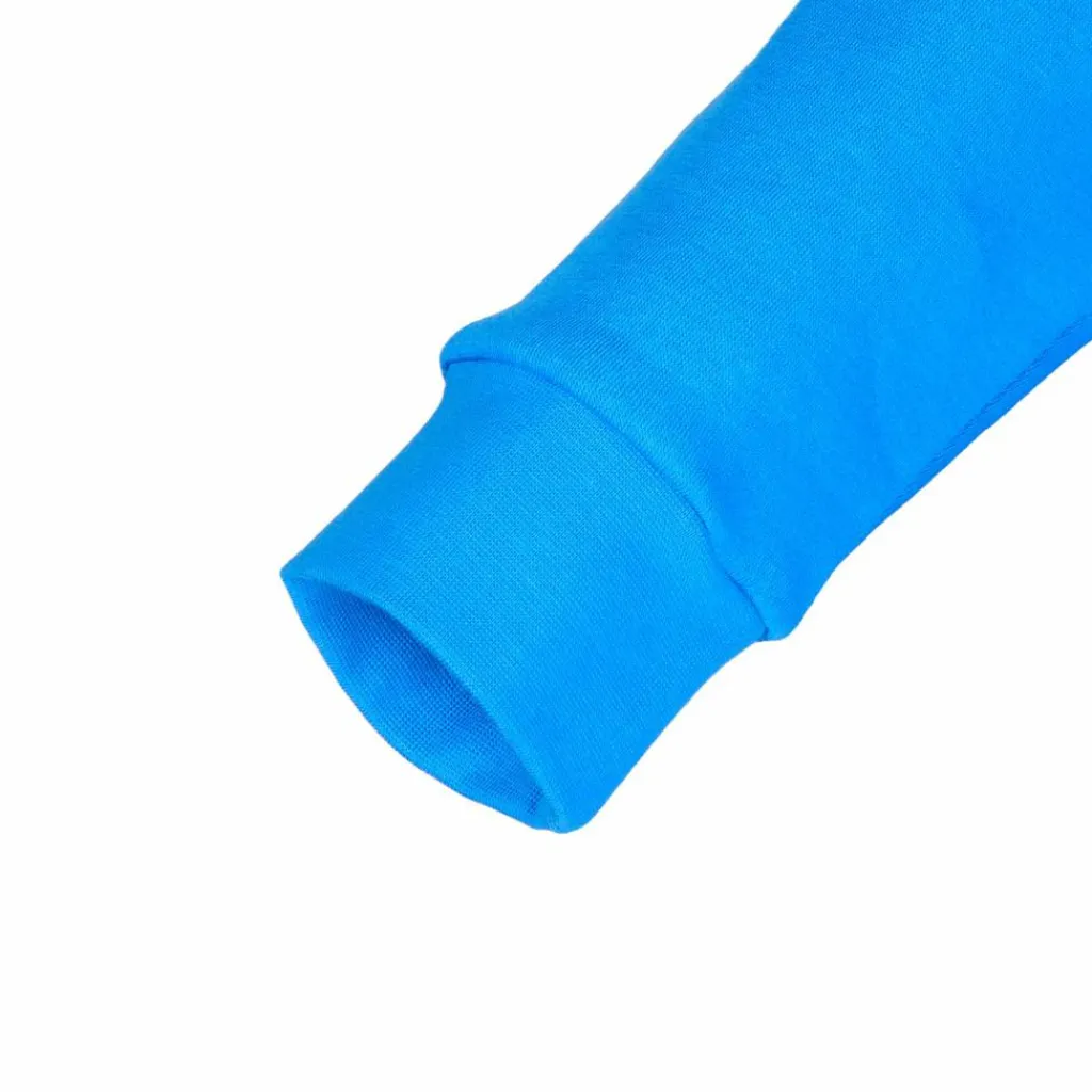 Der Hoodie besteht aus einem Mix aus Baumwolle und recyceltem Polyester. Er hat außen einen glatten, weichen Griff und ist innen aufgebürstet. So sorgt er für wohlige Wärme und ein kuscheliges Tragegefühl. Die reguläre Passform ermöglicht viel Bewegungsfreiheit. Perfekt, wenn es beim Spielen auf dem Schulhof oder Campingplatz etwas wilder zugeht.