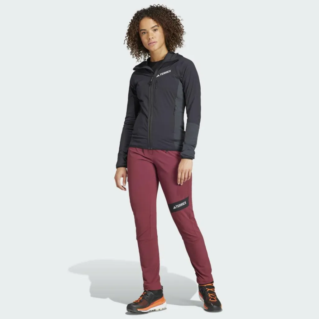 Bergsteigerinnen aufgepasst: Die Terrex Techrock Hooded Wind Fleece Jacket verfügt über windabweisende Einsätze und punktet außerdem mit schnellem Feuchtigkeitstransport und hoher Elastizität.