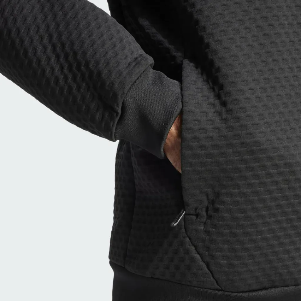 Wenn du mit einem Rucksack unterwegs bist, profitierst du außerdem von den nach hinten versetzten Schulternähten. In dieser Position drücken oder scheuern die Nähte unter den Rucksackgurten weitaus weniger, als wenn sie direkt auf den Schultern liegen würden. Die Rippstrick-Bündchen an den Ärmeln und am Saum sorgen einen guten Sitz und einen klassischen Sweater-Look. An den Ärmelbündchen sind außerdem Daumenschlaufen eingearbeitet, so bleiben deine Handrücken angenehm warm und die Ärmel an Ort und Stelle. Zwei Einschubtaschen mit Reißverschluss bieten kleinen Gegenständen eine sichere Bleibe.