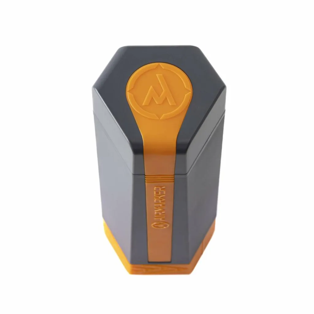 Die robuste Hülle des AirMarker R.One besteht aus einem hochwertigen recycelten Kunststoff. Sie beinhaltet neben dem Ballon auch die Auslöseeinheit mit 3 speziellen Helium-Zylindern. Die 45 m lange Verbindungsleine ist aus einer Hochleistungskunstfaser hergestellt.