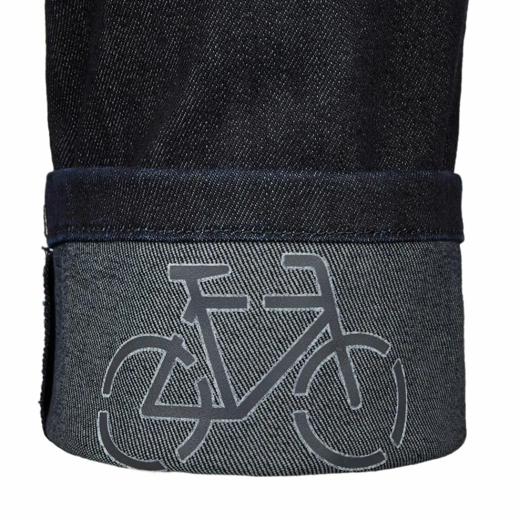 Diese Hose hat so manch schöne Überraschung zu bieten: Das Mischgewebe ist dehnbar und komfortabel, außerdem weist es dank ecorepel Wasser und wässrigen Schmutz ab. Auch der Schnitt ist radspezifisch: Der Bund ist hinten leicht höher geschnitten; die Gesäßtaschen sind so angeordnet, dass sie auf dem Sattel nicht stören. Außerdem hat die Bike-Jana – Ecorepel Denim reflektierende Elemente an den richtigen (und gleichzeitig unauffälligen) Stellen.