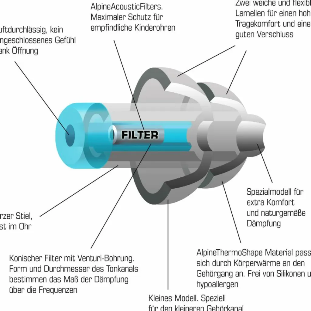 Die Ohrenstöpsel Kinder verlangsamen und regulieren Lärm und Druckveränderungen vor dem Trommelfell durch einen eingebauten Filter. Die Hülle aus thermoplastischem Material erlauben einen druckfreien Sitz auch beim Anlehnen an ein Kissen und dämpft die Geräusche. Das ermöglicht nicht nur entspanntes Reisen im Flieger oder der Bahn, sondern auch das konzentrierte Arbeiten an Schulaufgaben bei Konzentrationsschwäche. Durch den eingebauten Filter bleiben Gespräche trotzdem weiterhin hörbar.