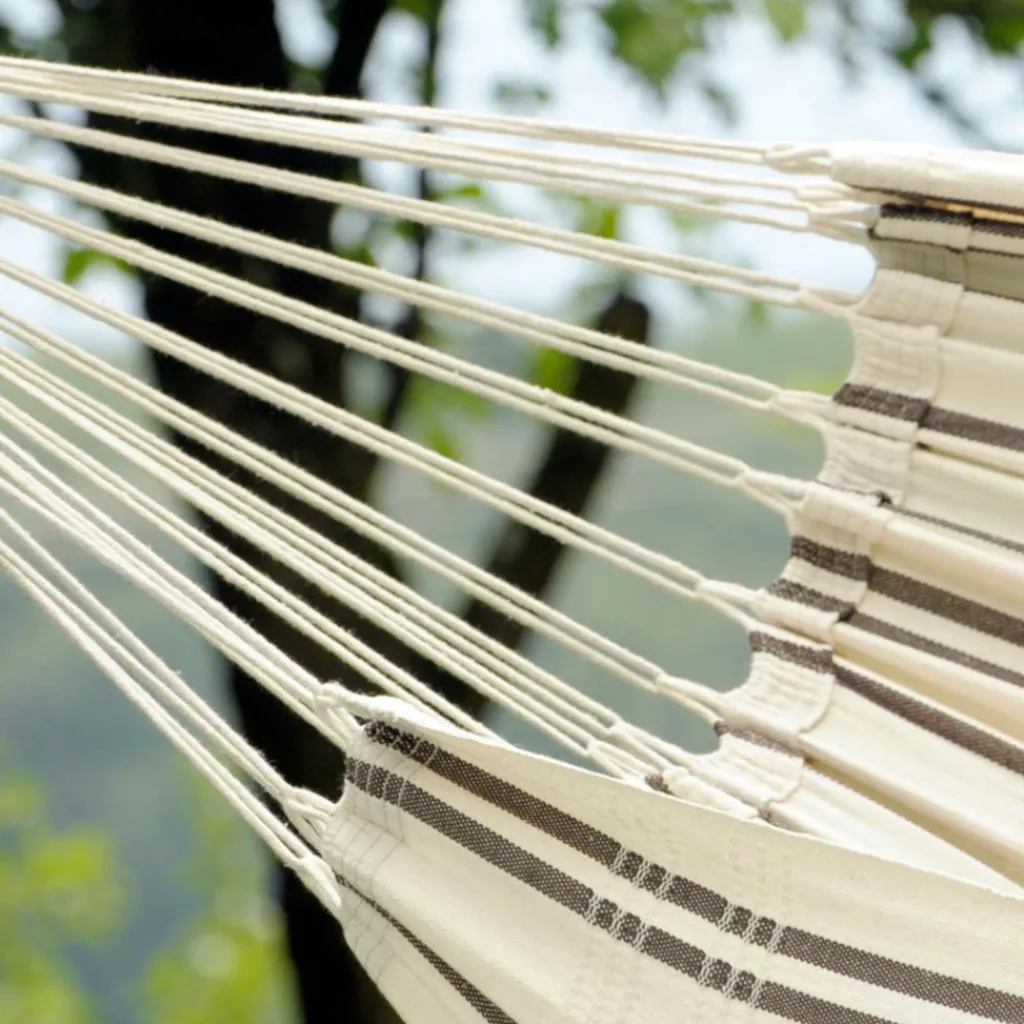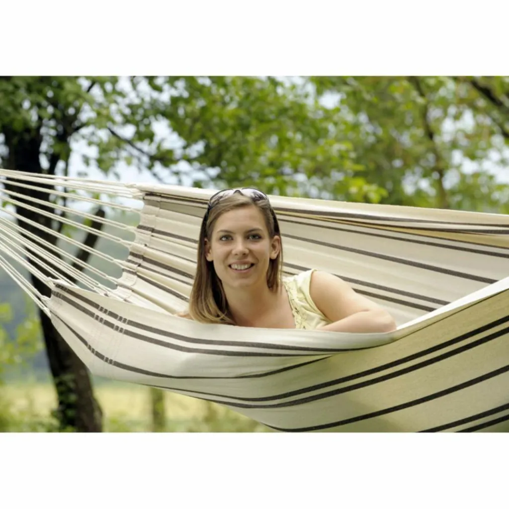 Die Barbados entsteht weitestgehend in Handarbeit. Der dichte, schwere Stoff ist angenehm im Griff und sehr langlebig. Durch die zahlreichen Aufhängeschnüre wird die Barbados sehr gut aufgefächert und du liegst traumhaft schwerelos.