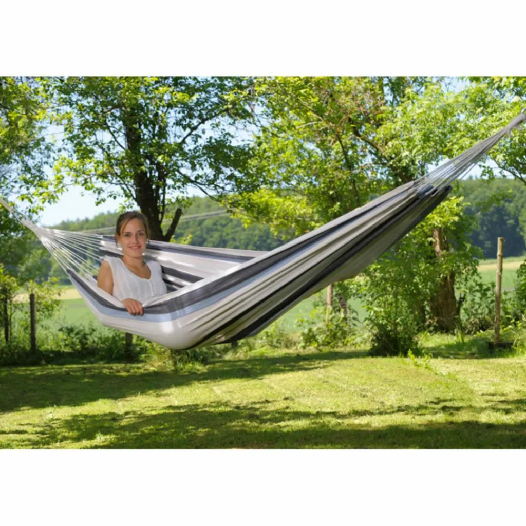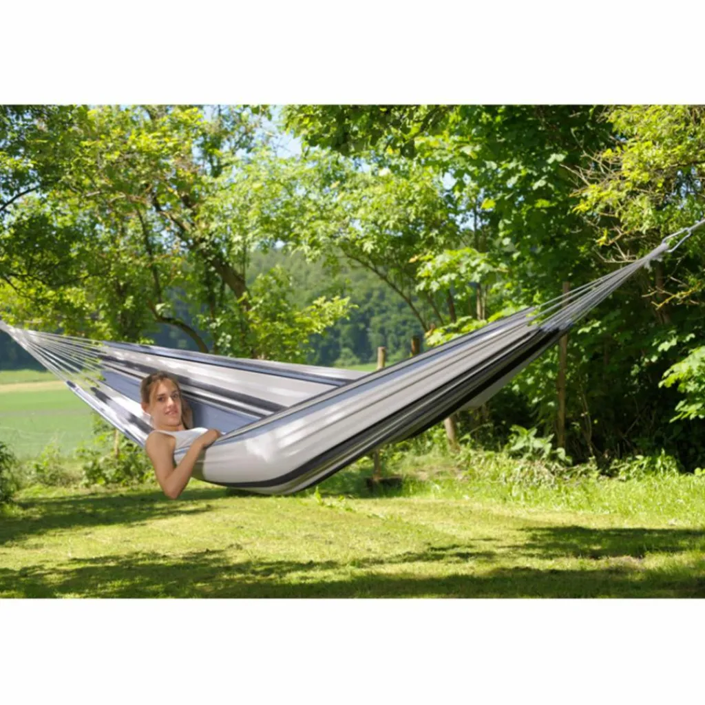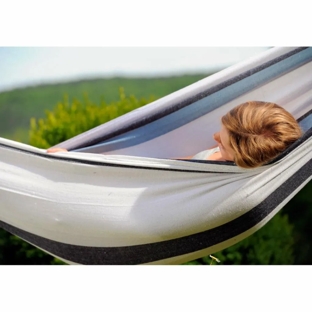 Das Material ist baumwollweich und dabei fast zur Hälfte aus Polyester. Das verleiht dem Elltex-Material (Elltex steht für Extra Long Lasting Textile) eine hohe Wetterbeständigkeit und Robustheit. Durch die Breite von 140 cm kannst du auch in dieser Hängematte den Amazonas-typischen, beinahe schwerelosen Liege-Komfort genießen.