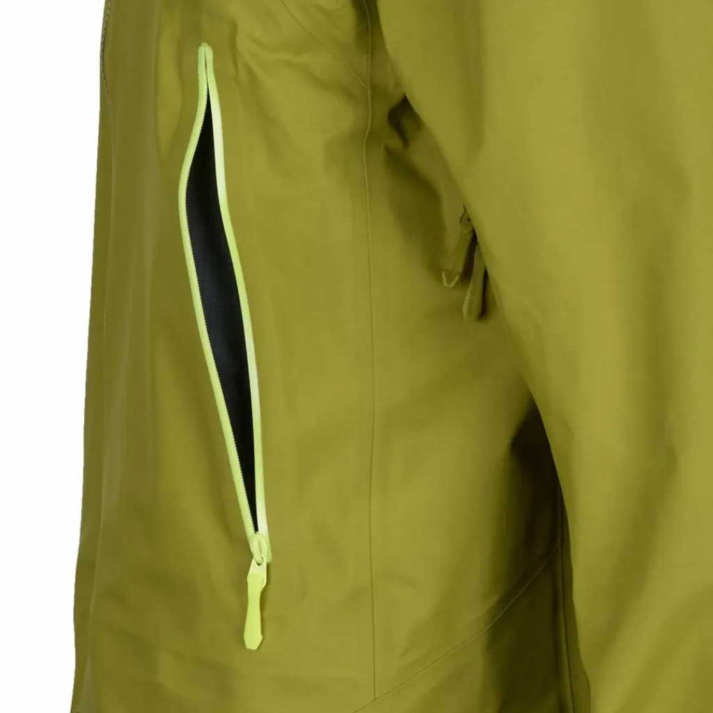 Das Material ist aber nicht nur durch ihr geringes Gewicht äußerst praktisch: Zusätzlich ist es dank ePE-Membran von Gore-Tex wasser- und winddicht und bietet selbst besonders hartnäckigen, stürmischen Regenschauern zuverlässig die Stirn. Für zusätzlichen Schutz sorgen der hohe Kragen und die einhändig verstellbare Kapuze mit stabilem Schirm und Kinnschutz. Zudem ist die Jacke stark atmungsaktiv, sie lässt also besonders viel Wasserdampf entweichen, wenn du bei deinen Aktivitäten ins Schwitzen gerätst. Zusätzlich sorgen die Belüftungsreißverschlüsse unter den Armen bei Bedarf für schnelle Abkühlung.