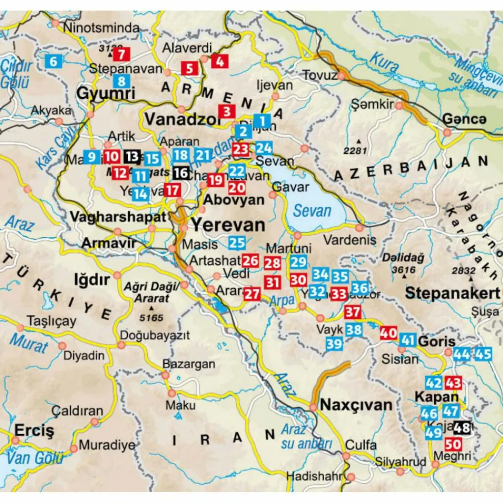 In Armenien, dem ältesten christlichen Land der Welt, schlägt das wilde Herz des Kaukasus. Für Bergsteiger ist die kleine Republik südlich von Georgien das Land der unbegrenzten Tourenmöglichkeiten. Imposante Bergketten, artenreiche Wiesen, weite Steppen finden sich hier und immer wieder alte Kirchen und Klöster in völliger Abgeschiedenheit und im Einklang mit der Natur. Der Rother Wanderführer »Armenien« stellt 50 Wanderungen in dieser atemberaubenden Landschaft mit ihren Vulkanen, Schluchten und Seen vor. Der alpine Höhepunkt heißt Aragaz. Das riesige Vulkanmassiv fällt schon bei der Ankunft ins Auge. Entlang der vierzackigen Felskrone liegen fast das ganze Jahr über Schneefelder. Nur im Spätsommer apert der 4090 Meter hohe Riese kurzzeitig völlig aus. Imposante Bergketten gruppieren sich auch um den Sewansee, der etwa doppelt so groß wie der Bodensee ist. Und im Geghamgebirge wiederum haben sich zahlreiche Einsturzkrater gebildet, die sich zum Teil im Sommer mit Schmelzwasser füllen. Vor allem im Mai und Juni überzieht ein grüner Teppich mit bunten Farbtupfern aus Blumen zahlreiche Hänge. Hier fällt es wirklich leicht, zum Naturschwärmer zu werden. Armenien lässt sich mit einer Portion Neugier ideal in Eigenregie bereisen.