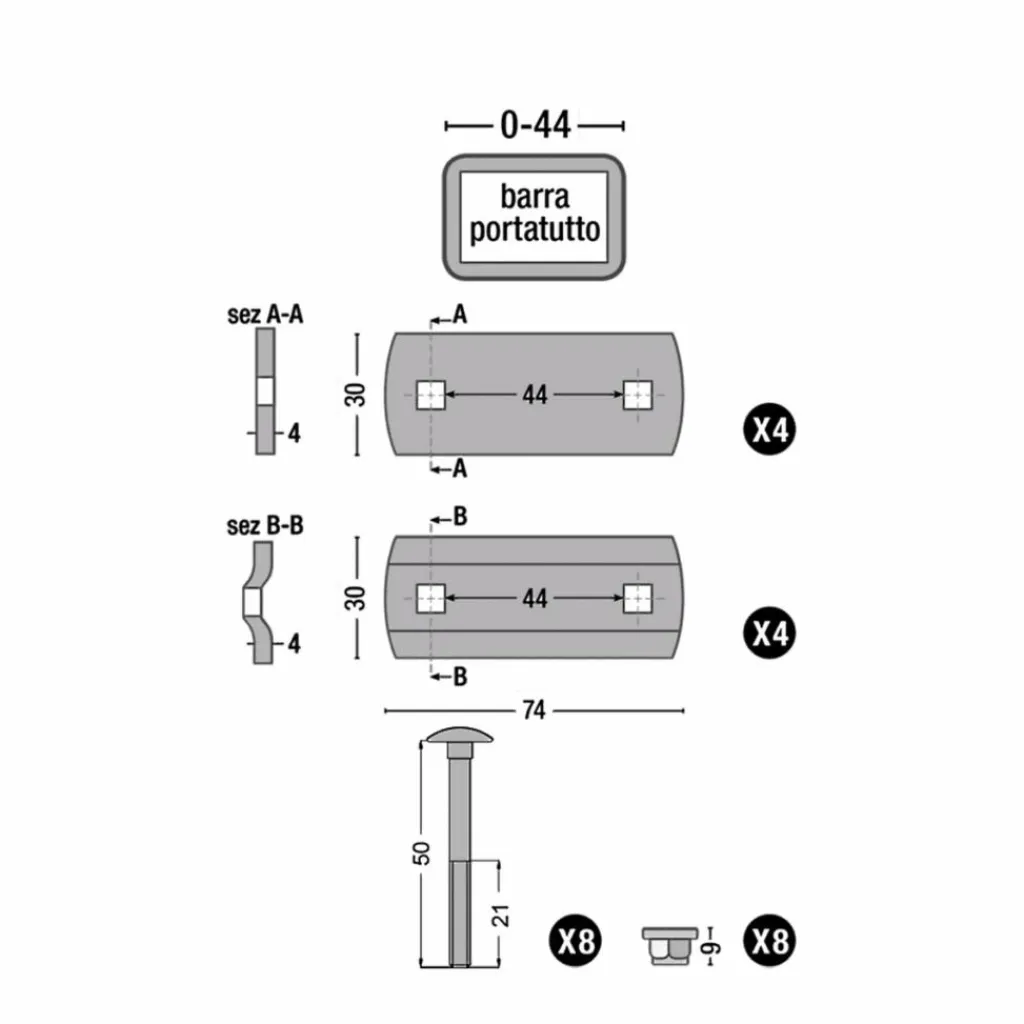 Hochwertiges Befestigungs-Set, mit dem du dein Dachzelt auf dem Dachträger befestigen kannst. Die Größe muss entsprechend der Dachträgerbreite gewählt werden.