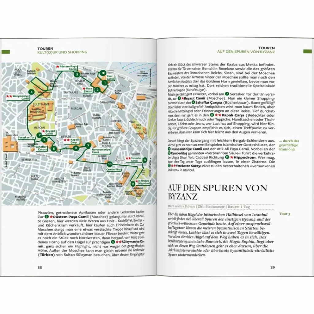 Zwischen zwei Welten gelegen, erstreckt sich die Metropole am Bosporus über Europa und Asien. Unser Reiseführer Istanbul führt in eine Weltstadt, die derzeit eine Renaissance erlebt – nicht nur der vielen Sehenswürdigkeiten wegen: Lebendige Kultur, junge Szene und Tradition faszinieren quer durch die Generationen. Istanbul setzt Trends und bleibt sich treu. Entdecken Sie die Stadt zu Fuß: Spannende Tourenvorschläge führen zu Istanbuls Attraktionen im historischen Zentrum, ins Universitätsviertel, zum großen Basar Istanbuls , folgen den Spuren der Byzantiner in die Hagia Sophia , flanieren durch das pulsierende Beyoglu und machen Ausflüge auf dem Bosporus und zu den Prinzeninseln.