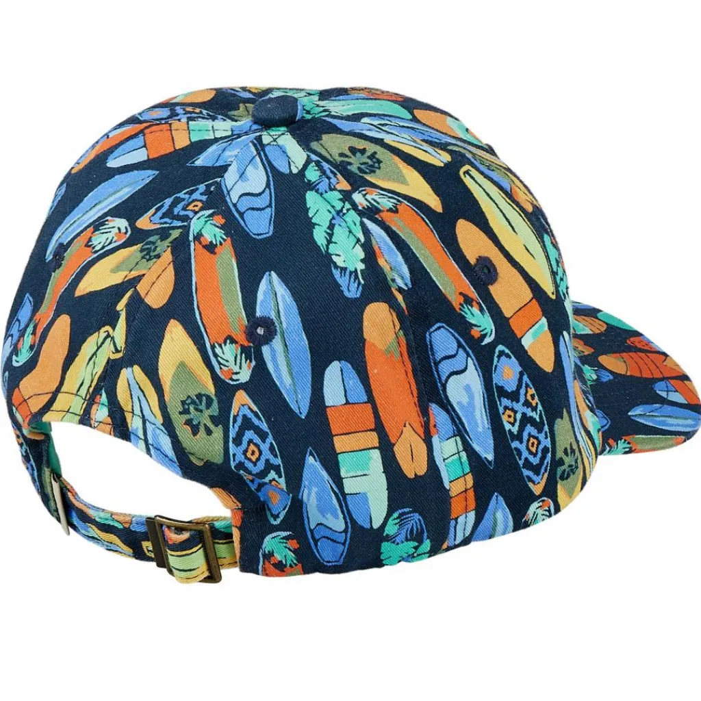 Hier ist ganz schön was los. Farbenfroh präsentiert sich die Cap aus 100 % Baumwolle. Sie hat zum Schutz von Kindergesichtern gleich noch eine ca. 6,5 cm langen Schirm im Gepäck. Für den Komfort kleiner Sonnenanbeter:innen verläuft innen ein weiches Band. Dieses nimmt außerdem entstehende Feuchtigkeit auf, wenn es besonders warm wird. Da jeder Kinderkopf anders ist, lässt sich mithilfe eines stufenlos verstellbaren Stoffriegels der passende Sitz finden.