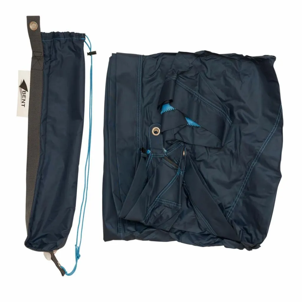 Kräftiges Tarp, das sich durch die abdeckten Reißverschlüsse ideal für den Dachbereich eignet. Es kann mit anderen Tarps von Bent zusammengezippt werden.