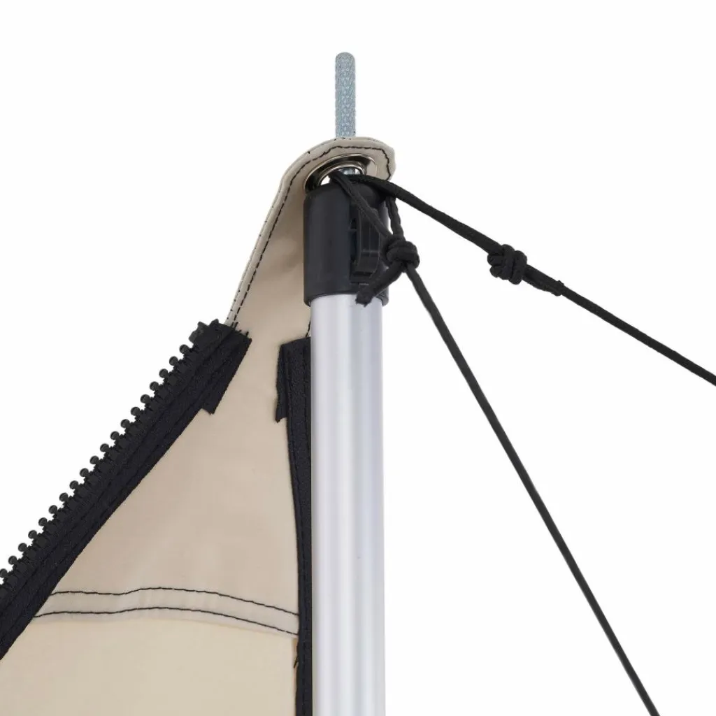 Jede Ecke des Tarps ist verstärkt und besitzt eine Metallöse, durch die du eine (separat erhältliche) Tarpstange stecken kannst. Mit den Abspannleinen wird das Tarp sicher an Bäumen oder am Boden fixiert. Damit stellt das Bent Tarp einen schönen Begleiter dar, der dich zu Festivals, zum Campen oder an den Strand begleitet.