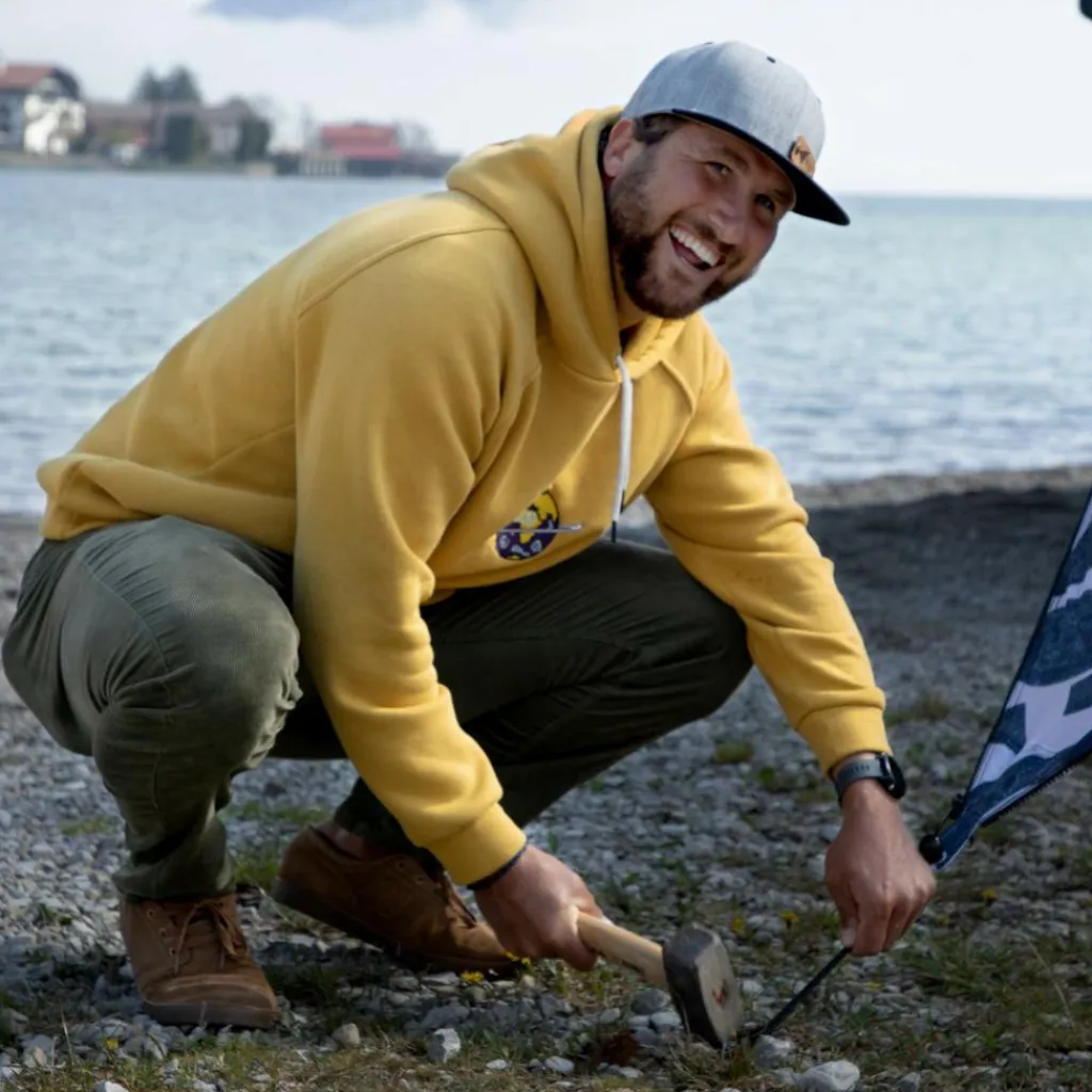 Die elastischen Bänder federn Windböen ab und eignen sich auch, um mehrere Tarpstangen für den Transport zusammenzuhalten. Die Holzheringe werden in Europa gefertigt und stammen aus nachhaltiger Forstwirtschaft.