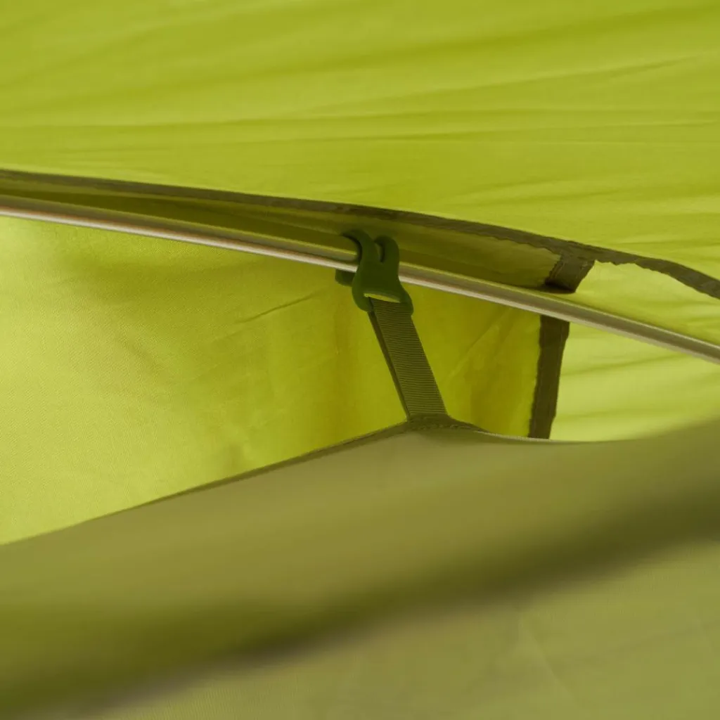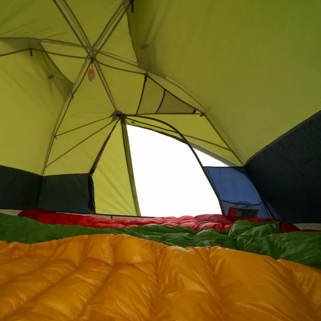 In den beiden Apsiden kannst du das Gepäck lagern, während du im Innenzelt genügend Platz für zwei Isomatten hast. Das weit aufgespannte Innenzelt bietet dir im Kopfbereich viel Bewegungsfreiheit, was ein gemütliches Beisammensitzen am Abend ermöglicht. Um in der Nacht die Stirnlampe oder Brille schnell zu finden, verfügt das Innenzelt über zwei Seiten- und vier Deckentaschen (zwei davon mit Kabeldurchführung).