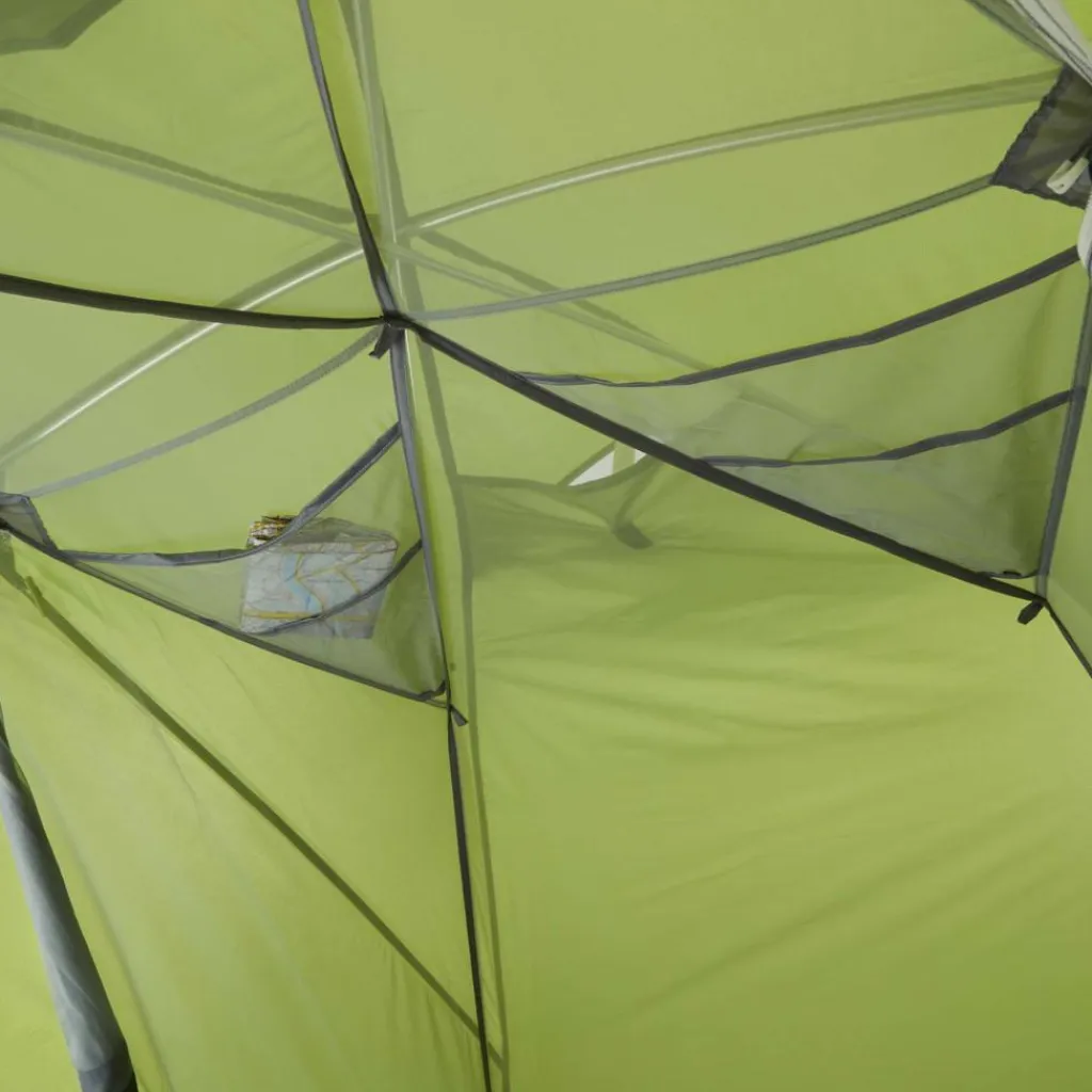 In den beiden Apsiden kannst du das Gepäck lagern, während du im Innenzelt genügend Platz für zwei Isomatten hast. Das weit aufgespannte Innenzelt schafft im Kopfbereich viel Bewegungsfreiheit, was ein gemütliches Beisammensitzen am Abend ermöglicht. Um in der Nacht die Stirnlampe oder Brille schnell zu finden, verfügt das Innenzelt über zwei Seiten- und vier Deckentaschen (zwei davon mit Kabeldurchführung).
