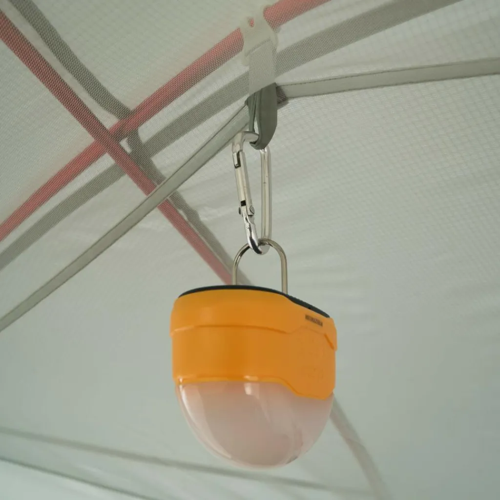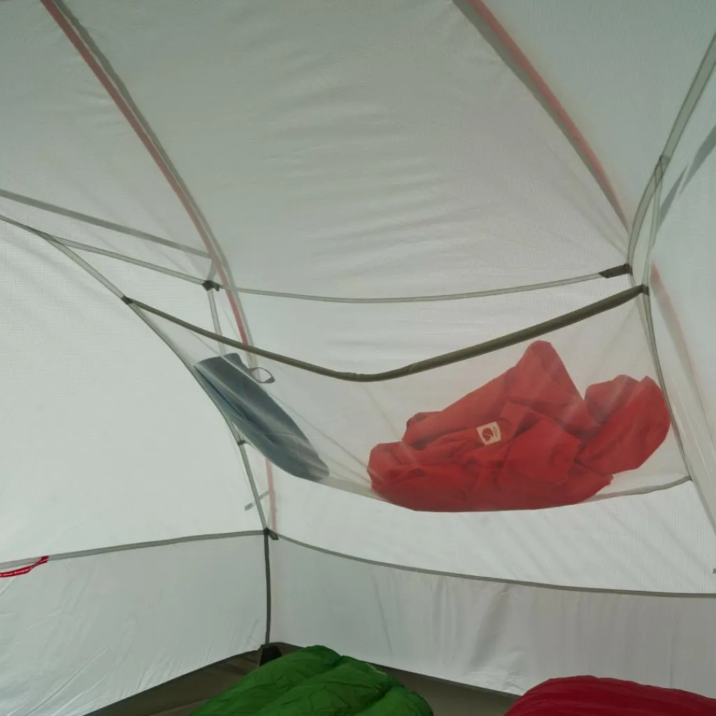 Durch das hochgezogene Außenzelt, den Dachlüfter und die großen Mesh-Flächen am Innenzelt ist auch bei wechselhaftem Wetter für eine gute Belüftung gesorgt. Die zahlreichen Schlaufen im Innenzelt ermöglichen das Aufhängen mehrerer Wäscheleinen zum Lüften von Bekleidung oder das Anbringen einer Zeltlaterne.