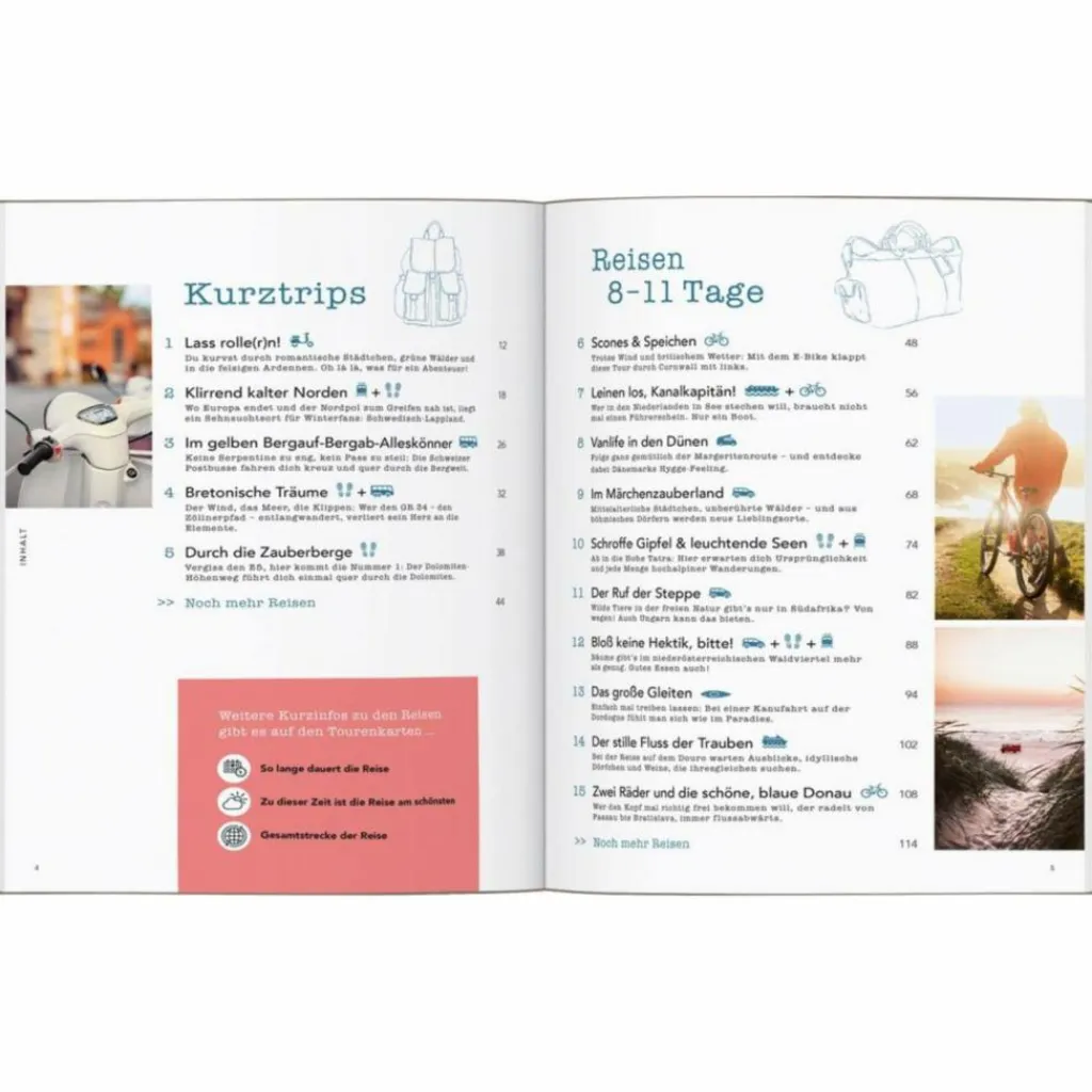 Dieses Buch nimmt mit auf 30 spannende und einzigartige Trips quer durch Europa, die man so in keinem Reisebüro buchen, aber ganz mühelos nachreisen kann. Praktische Tipps zur fluglosen An- und Abreise, Schritt-für-Schritt-Beschreibung der Route sowie Vorschläge für Aktivitäten vor Ort machen die Planung leicht. Für noch mehr Inspiration sorgen im Kapitel „Mehr davon“ rund 20 weitere Ideen für umweltfreundlichen Urlaub und zahlreiche tolle Fotos, die schon beim Durchblättern die Abenteuerlust wecken.