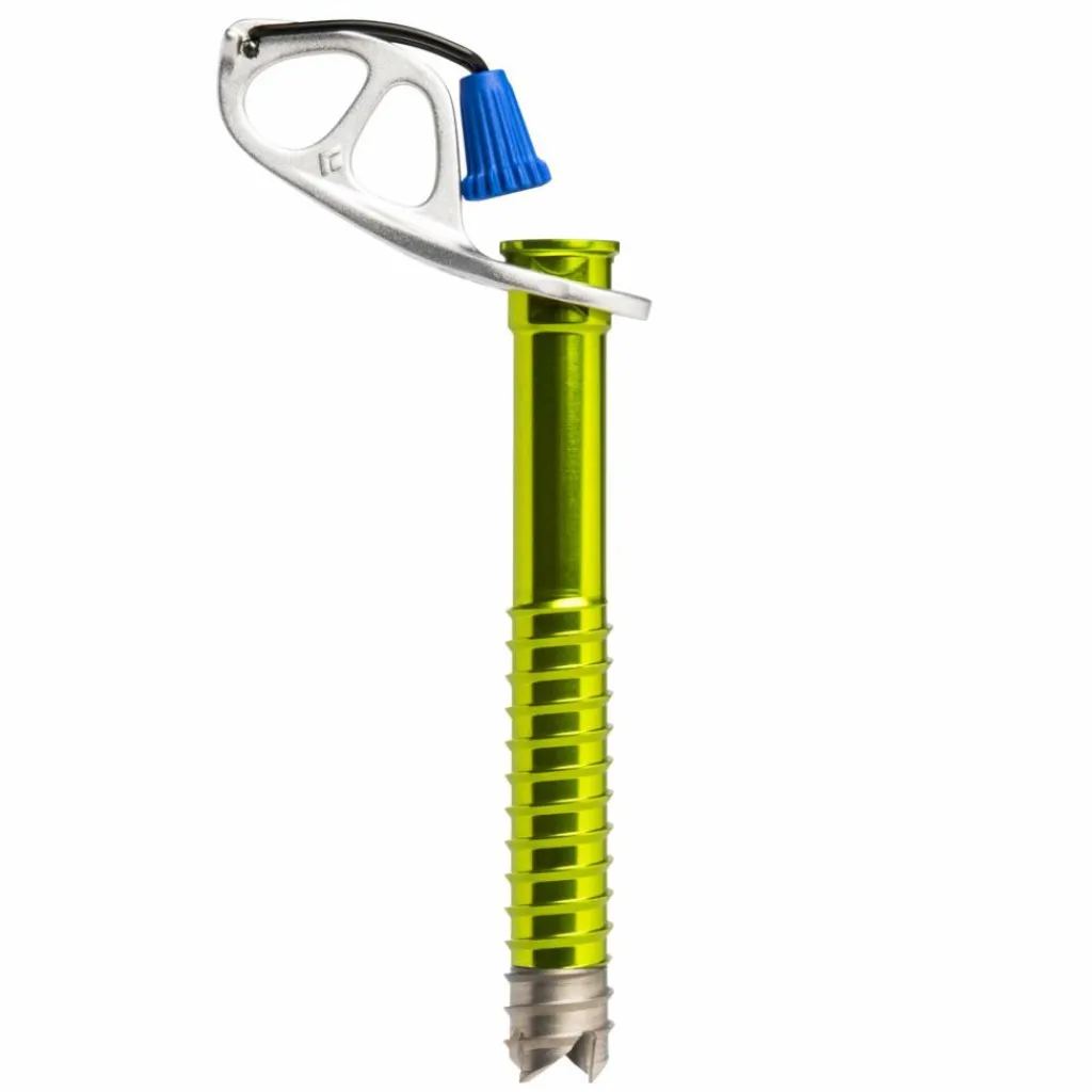 Die enorme Gewichtsersparnis wird durch die Kombination einer rostbeständigen Stahlspitze mit einem Aluminium-Körper möglich. Auch die geschmiedete Lasche mit zwei Einhängeösen ist bei der Ultralight Screw aus Aluminium gefertigt. Die Expresskurbel, die das Eindrehen der Schraube ins Eis erleichtert, besitzt einen leichten Griff aus Draht, der beim Aus- und Einklappen einrastet. Die Länge der Ultralight Ice Screws kannst du am Gurt anhand der Farbe des Kurbelgriffs identifizieren.