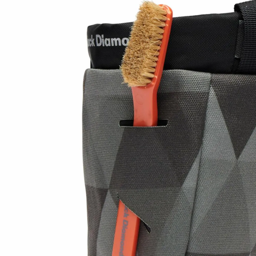 Geräumiger Chalkbag, ausgestattet mit allem, was du für die Kletterhalle benötigst: dazu zählt auch ein Fach für die Zutrittskarte und eine Halterung für die Boulder-Bürste.