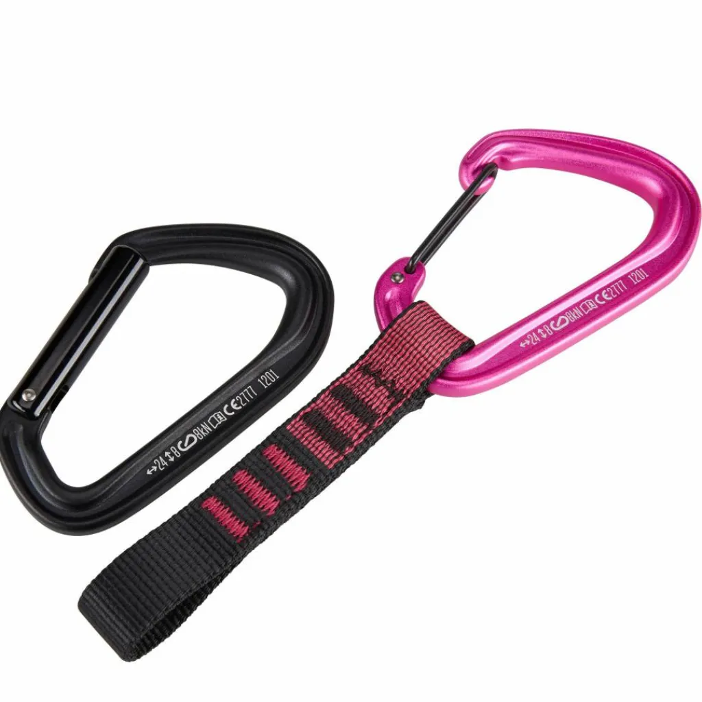 Dieses vielseitige Express-Set ist mit einem HotForge Keylock-Karabiner mit geradem Steg oben und einem HotWire-Karabiner mit Drahtschnapper und größzügiger Öffnung von 27 mm unten ausgestattet.