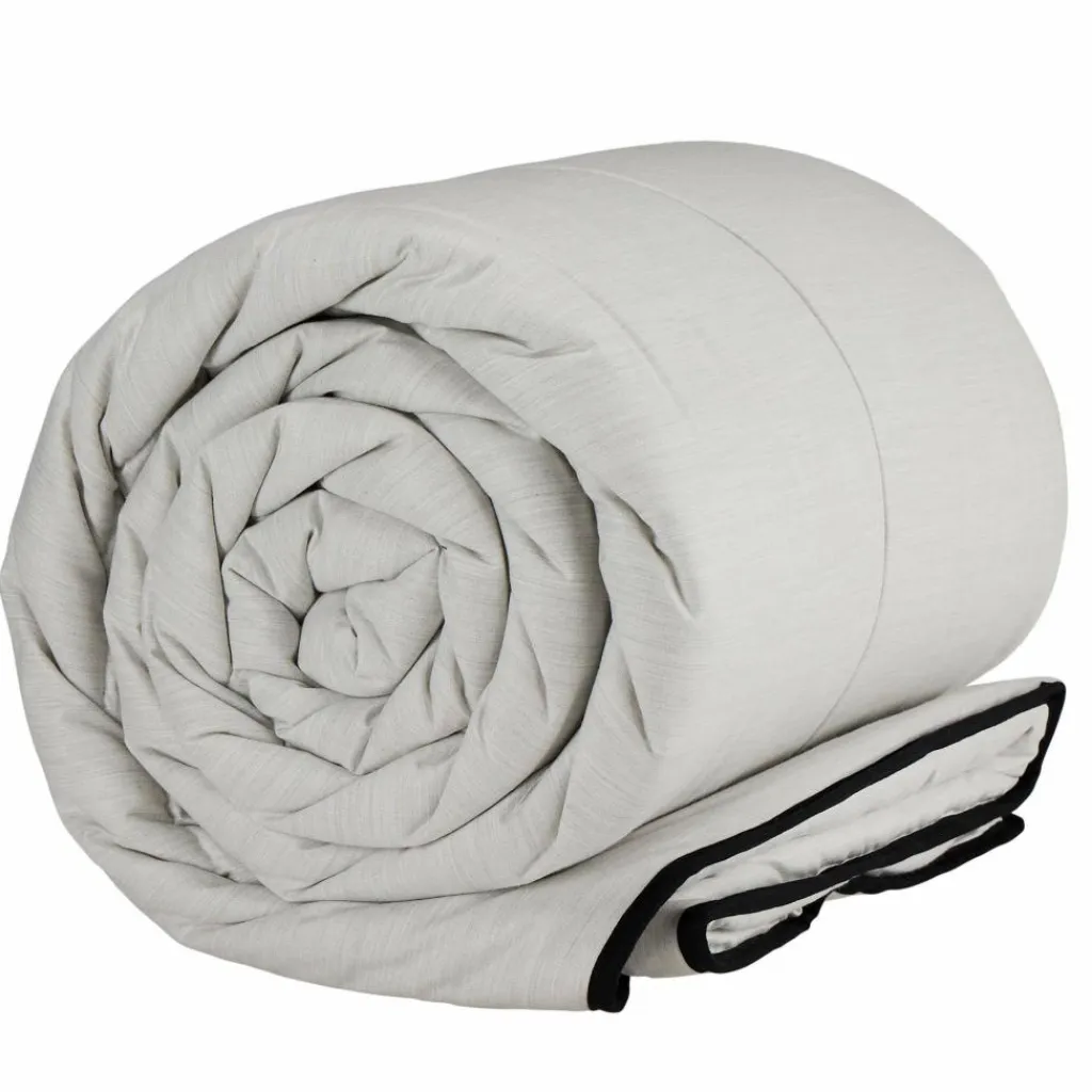 Die Bettdecke hat einen weichen Baumwollbezug und eine Isolierung aus Celliant-Fasern. Celliant ist ein patentiertes Material aus 80 % recycelten Fasern, in dessen Struktur mikroskopisch feine, thermoreaktive Mineralien eingearbeitet sind. Sie wandeln Körperwärme in Infrarotenergie um, die in den Körper zurückgestrahlt wird. Das regt die lokale Durchblutung an und unterstützt so den Schlafkomfort sowie die nächtliche Erholung. Zudem nimmt die Faser Feuchtigkeit auf und sorgt für ein trockenes, angenehmes Schlafklima. Dank des Packsacks lässt sich das Packmaß auf eine Größe von 43 × 25,5 cm reduzieren. So kannst du die Decke auch im Van oder Camper mitnehmen.