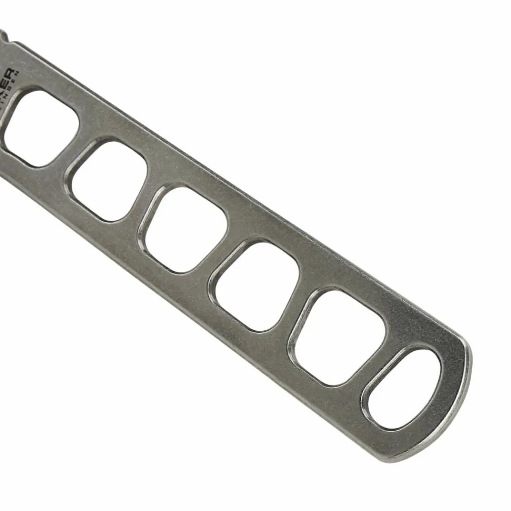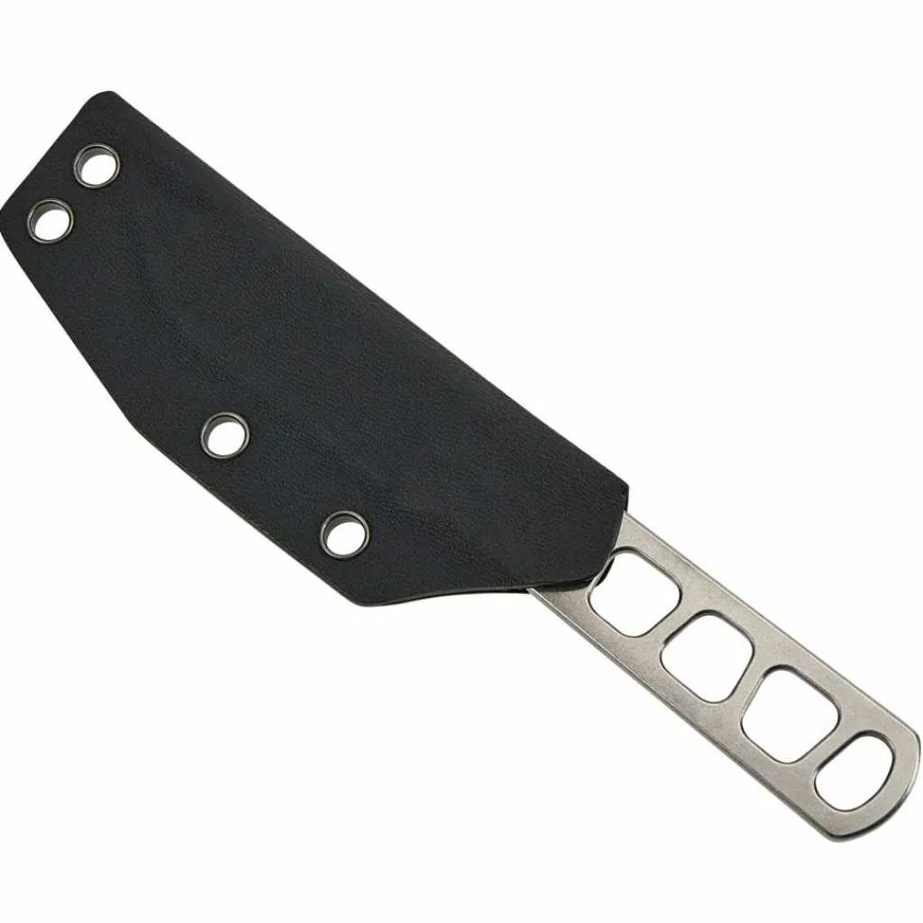 Die Ganzstahlkonstruktion besteht aus pulvermetallurgischem CPM MagnaCut-Stahl, der sich durch Zähigkeit und Rostbeständigkeit auszeichnet. Mit 61-62 HRC ist die Klinge zudem äußerst schnitthaltig. Der Griff ist mit gewichtsreduzierten Aussparungen versehen, wodurch das Messer lediglich 32 g wiegt. Abgerundet wird das Design durch ein mattes Stonewash-Finish.