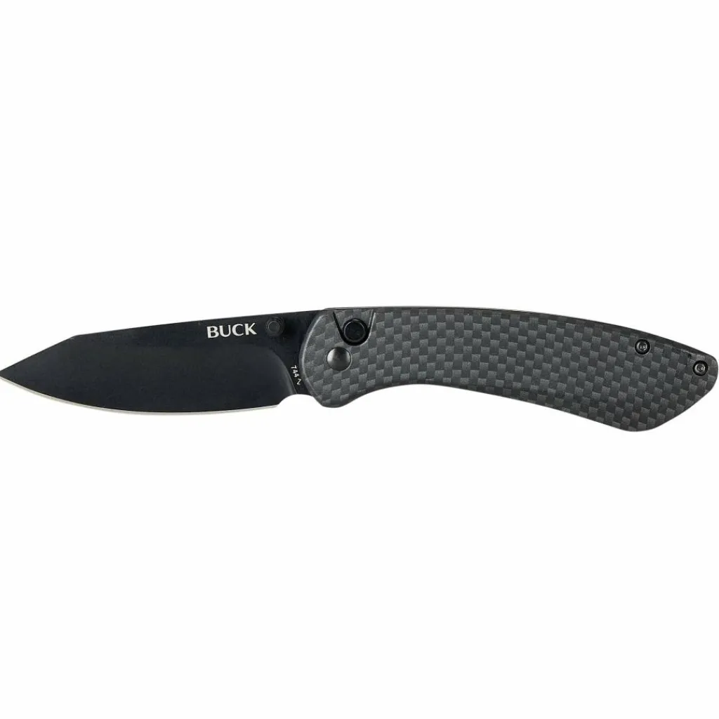 Bucks erstes Messer mit Button-Lock-Arretierung ist ein echter Hingucker. Auch wenn es auf den ersten Blick optisch zurückhaltend erscheint, wird man beim zweiten Hinschauen überrascht sein. Der Edelstahlgriff glänzt in Carbon-Optik und verleiht dem Messer ein modernes Aussehen. Über den Daumenpin kann die Klinge einhändig in die Arbeitsposition gebracht werden, wo sie dank der Button-Lock-Arretierung sicher verriegelt. Durch Drücken auf den eingelassenen Knopf lässt sich die Verriegelung lösen, um das Sovereign mithilfe des Taschenclips in der Hosentasche zu verstauen.