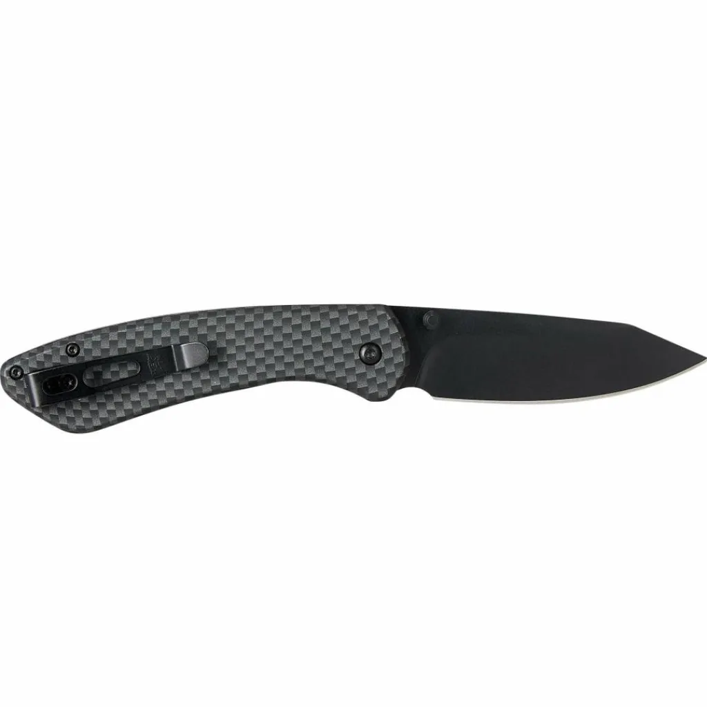Das Sovereign-Taschenmesser besticht durch sein schlichtes Design, einen seltenen Verriegelungsmechanismus, eine dunkle Klinge aus 7CR17-Stahl und passende Griffschalen aus Edelstahl in Carbon-Optik.