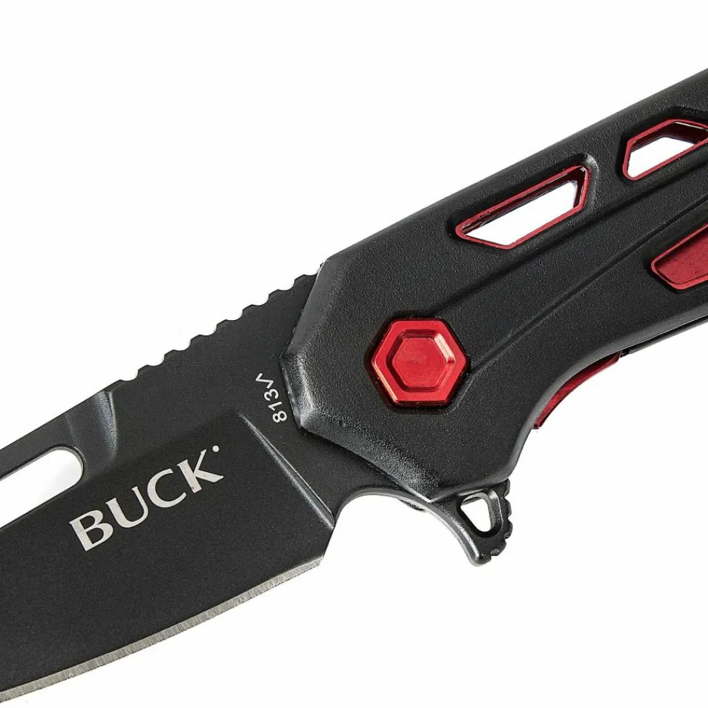Mit einer Gesamtlänge von 15 cm, bringt das Taschenmesser gerade einmal 50 g auf die Waage. Der Hauptgrund dafür sind die mit großen Aussparungen versehenen, eloxierten Aluminium-Griffschalen. Sie werden durch rote Farbakzente ergänzt, die das Gesamtdesign auflockern. Der kugelgelagerte Flipper lässt die Klinge mühelos in Arbeitsposition gleiten, wo sie dank des Liner-Locks sicher verriegelt. Bei präzisen Arbeiten unterstützt die strukturierte Daumenauflage auf dem Klingenrücken eine sichere Handhabung. Für den Transport kannst du den verschraubten Hosentaschenclip sowohl links- als auch rechtsseitig an den Griffschalen befestigen, wodurch das Messer für Links- und Rechtshänder gleichermaßen schnell zur Hand ist.