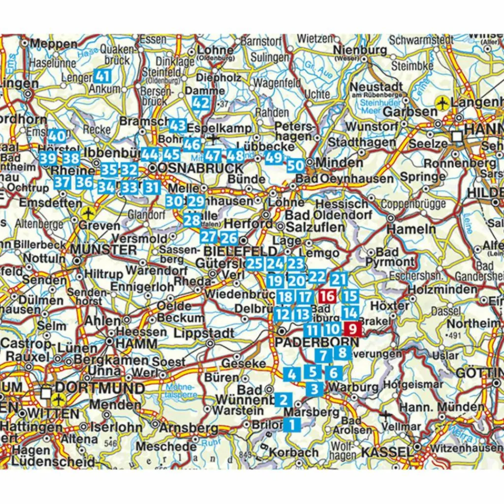 Die Wanderungen in diesem Wanderführer führen durch die Mittelgebirgsregionen vom Münsterland bis zum Weserdurchbruch, vom Osnabrücker Land bis zum Sauerland. Sie lassen die Felstürme der Dörenther Klippen erkunden, die Heideflächen der Senne, die Buchenwälder des Wiehen und die Wollgrasmoore des Tieflands. Sie führen an die Quellen von Ems, Hase und Lippe und zu ältesten Kulturzeugnissen: zu Dinosaurierspuren, Großsteingräbern und über 1000 Findlingen im Steinernen Meer. In den hübschen Fachwerkorten des Teutoburger Wald lässt sich die Wanderung bei einer Einkehr bestens abschließen.