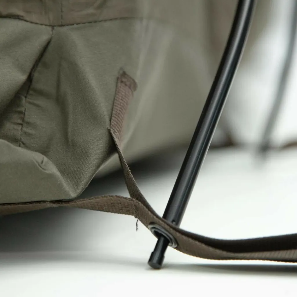 An den Gestängeenden befinden sich vier Befestigungspunkte für Heringe, zwei weitere liegen am Fußende. Auf einen Gestängebogen im Fußbereich wird aus Gewichtsgründen und für ein besseres Packmaß verzichtet. Das Fußende liegt somit flach auf dem Schlafsack auf.