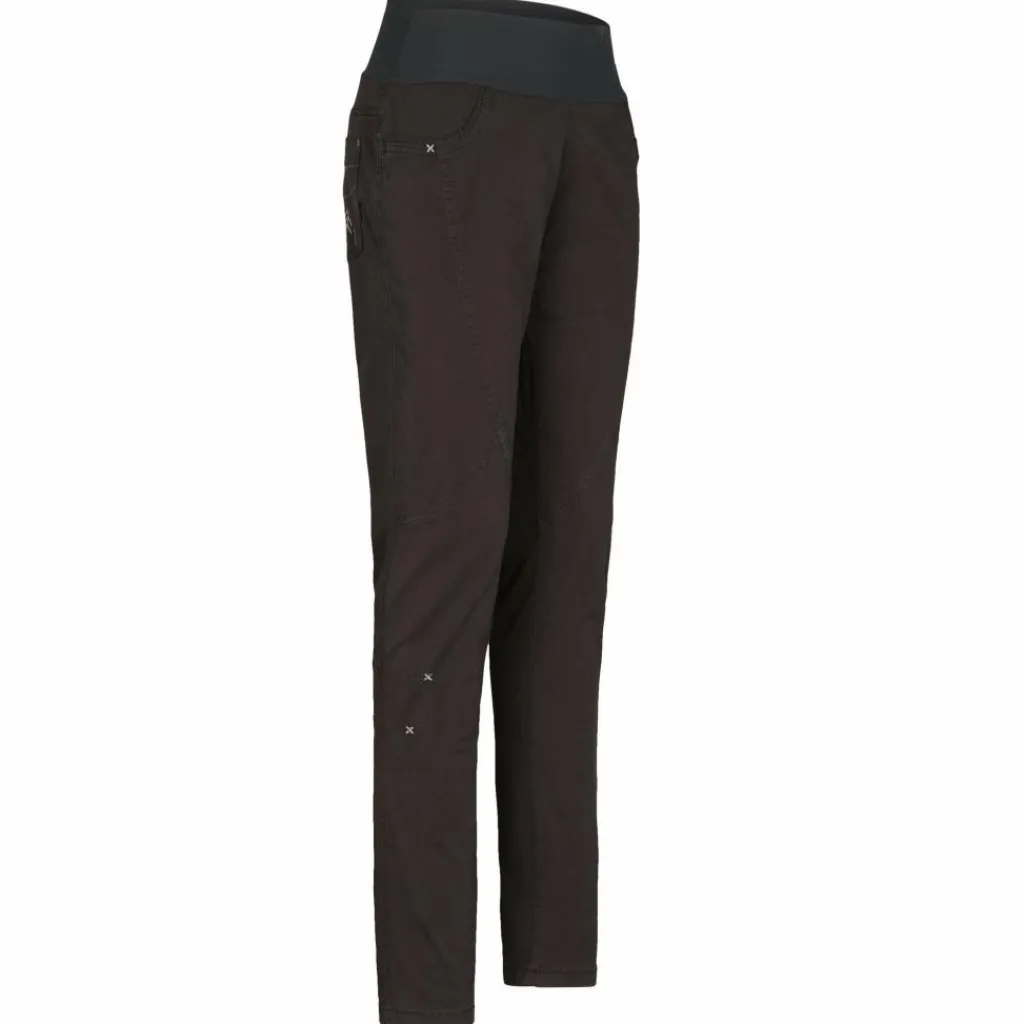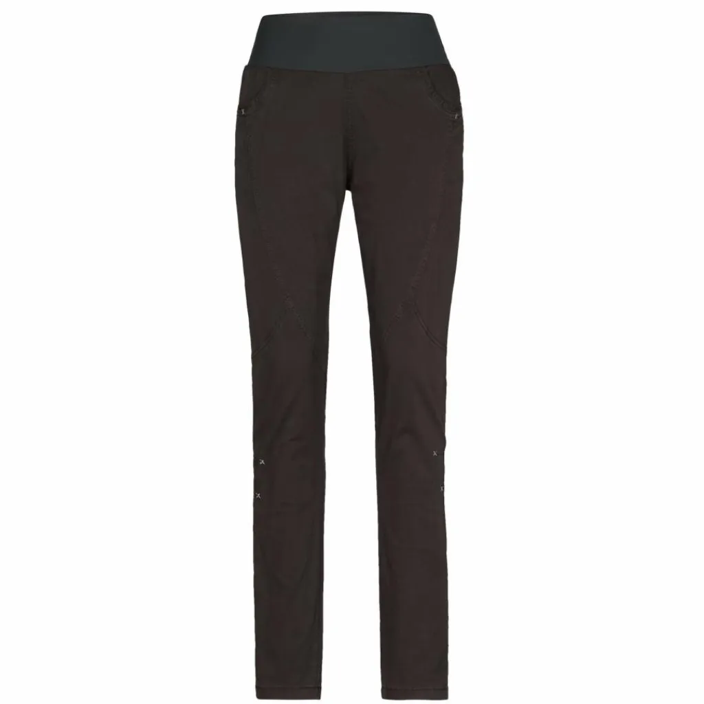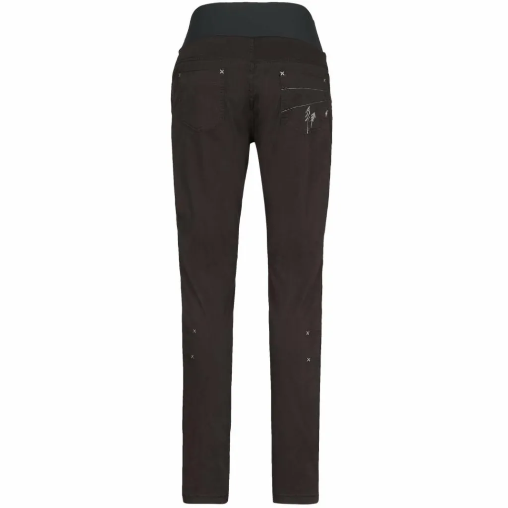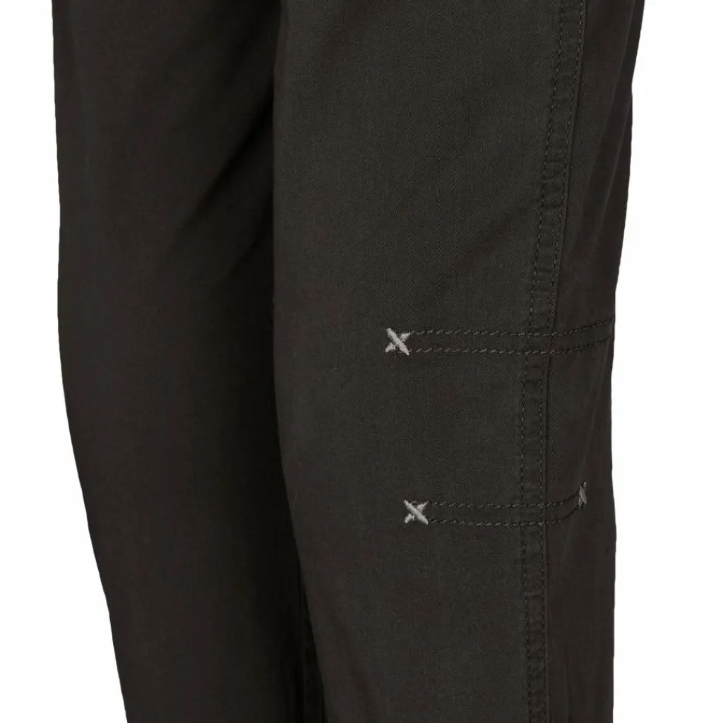 Die robuste, atmungsaktive Baumwollhose mit einem Schuss Elasthan sitzt herrlich bequem. Der hoch geschnittene flache Stretchbund aus Polyamid trägt unter dem Klettergurt nicht auf und sorgt zudem dafür, dass der untere Rücken auch beim Sitzen im Gurt schön bedeckt bleibt.