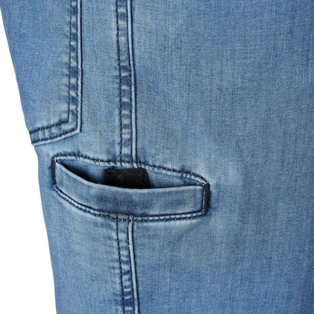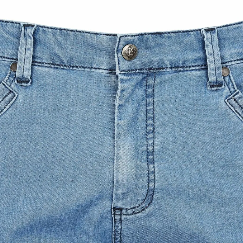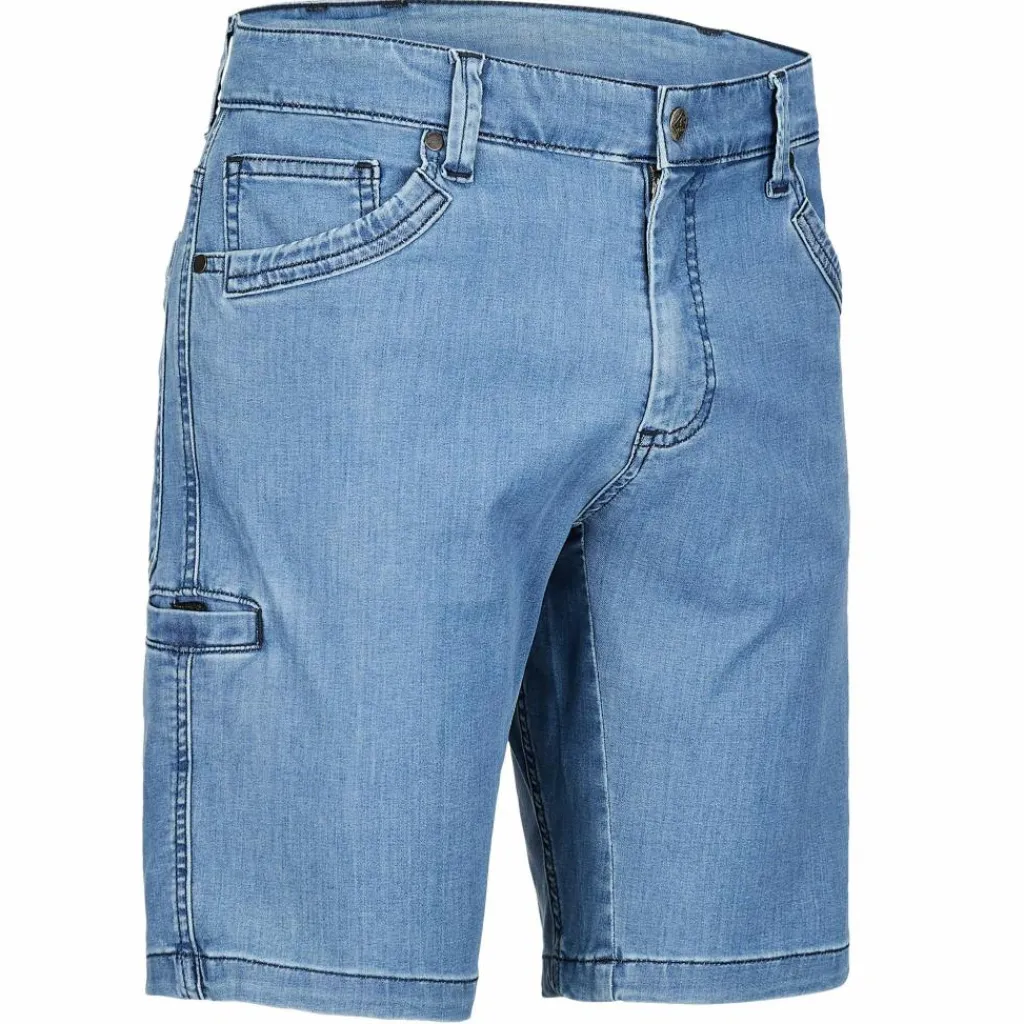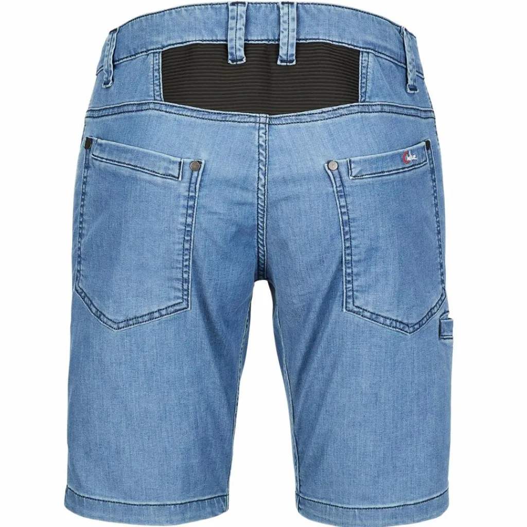 Die vollelastische Kufstein Klettershorts kommt im sommerlichen Jeanslook daher. Am Rücken sorgt ein Einsatz aus Kunstfasergewebe für Belüftung und einen schnellen Feuchtigkeitstransport.