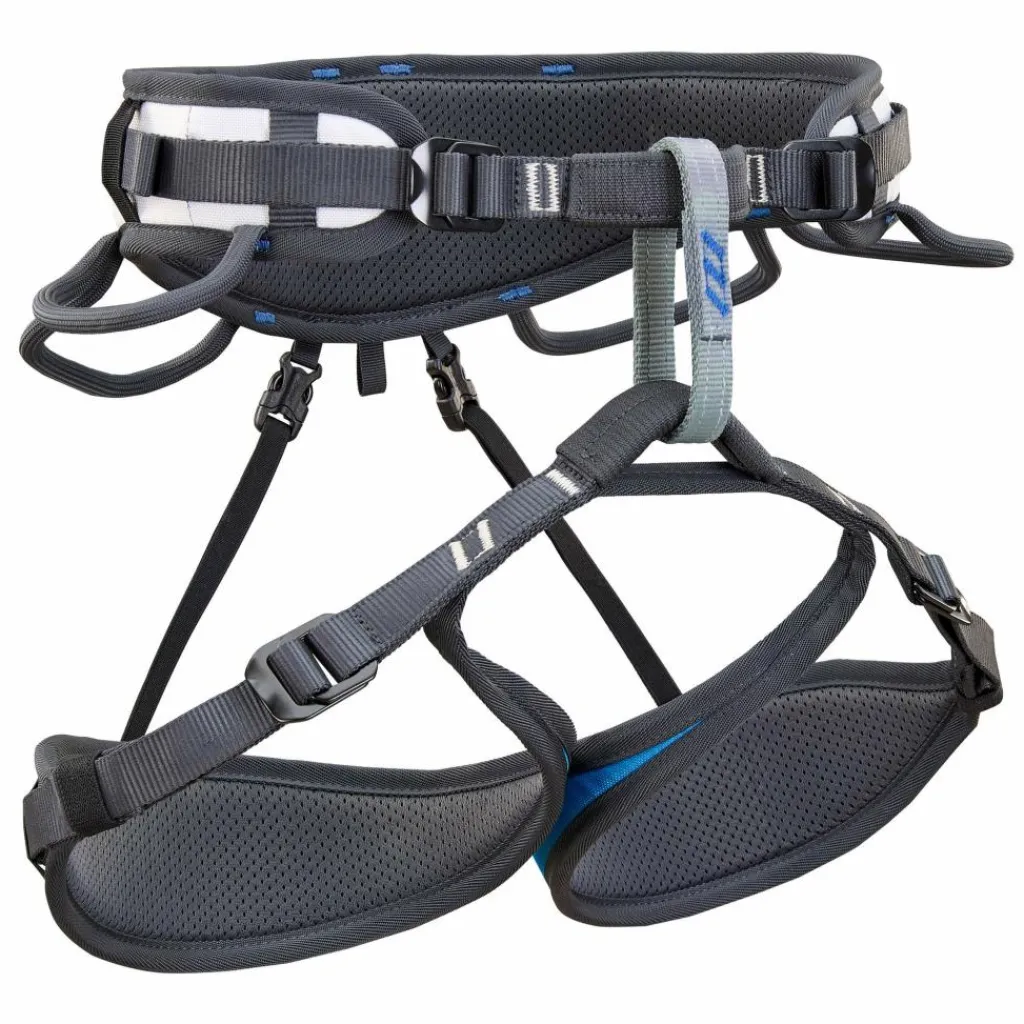 Dank der vier soliden Schnallen kannst du den Hüftgurt und die Beinschlaufen millimetergenau anpassen und den Einbindepunkt dabei stets schön mittig ausrichten. Das ist auch praktisch, wenn du mal eine Bekleidungsschicht mehr darunter tragen möchtest.