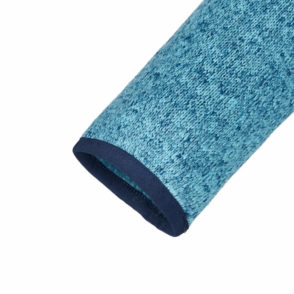 Die Strick-Außenseite hat einen angenehm weichen Griff und ist dennoch recht strapazierfähig. Innen ist das Material kuschelig weich aufgebürstet und sorgt so wohlige Wärme und hohen Tragekomfort. Das Material hält schön warm und kann gleichzeitig mit einem sehr guten Feuchtigkeitsmanagement und schnelltrocknenden Eigenschaften aufwarten. Dadurch haben deine Kids auch nach turbulentem Einsatz schnell wieder ein angenehm trockenes Tragegefühl.