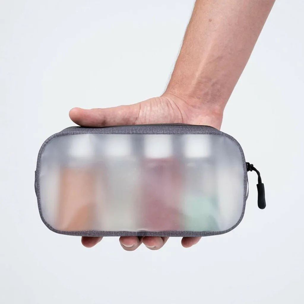 Diese transparente Kunststofftasche eignet sich bestens für die Flüssigkeiten, die du mit an Bord eines Flugzeugs nehmen möchtest. Die Tasche hält dicht: Sie ist komplett geschweißt.