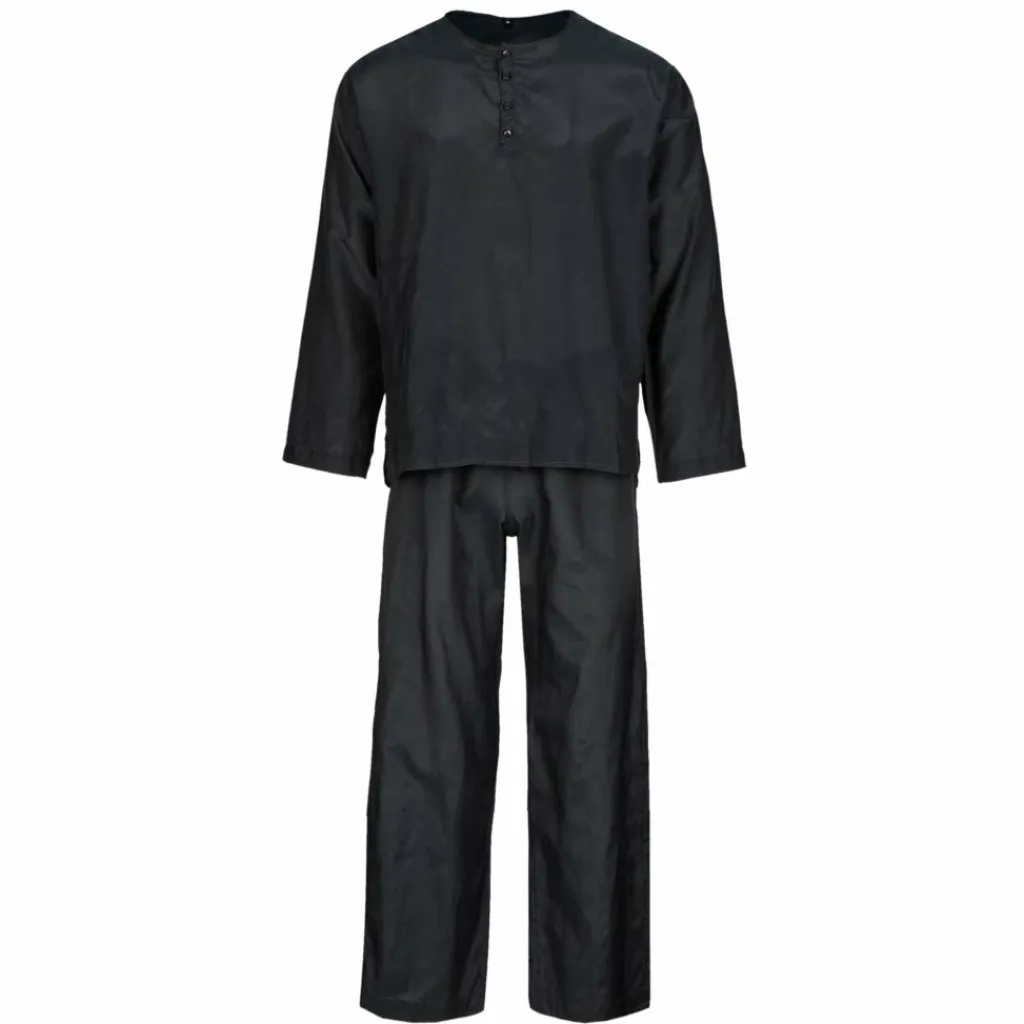 Die Seide wirkt temperaturausgleichend während die Baumwolle für Strapazierfähigkeit und Feuchtigkeitsspeicherung zuständig ist. Der Schlafanzug besteht aus einem langärmligen Oberteil und einer langen Hose. Das Packmaß beträgt 15 cm x 13 cm x 5 cm.