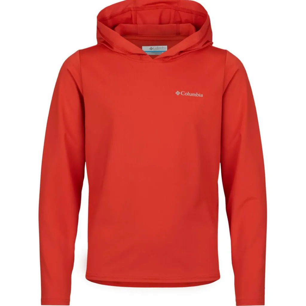 Der Hoodie besteht aus einer sommerlich leichten, dünnen Kunstfaser-Mischung und ist mit einer feuchtigkeitsleitenden Ausrüstung (Omni-Wick) versehen. Dadurch ist er im Nu wieder trocken, wenn die Kids beim Paddeln auf dem SUP-Board oder beim Spielen am Strand eine Ladung Wasser abbekommen haben. Die Omni-Freeze-Behandlung sorgt für einen leicht kühlenden Effekt. Äußerst angenehm bei heißem Wetter!
