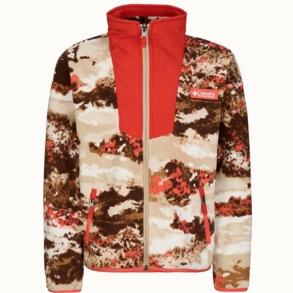 Die hübsche Sequoia Groove Printed Full Zip Fleecejacke hält deine Kinder angenehm warm, wenn ihnen beim Drachen steigen lassen am Strand oder abends beim Campen langsam etwas kühl wird.