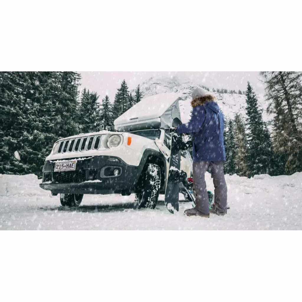 Die Thermohaube ist das richtige Zubehörteil für dein Dachzelt, wenn du in nasse und kalte Gebiete fährst. Sie besitzt ein geringes Packmaß und kann während der Fahrt montiert bleiben.
