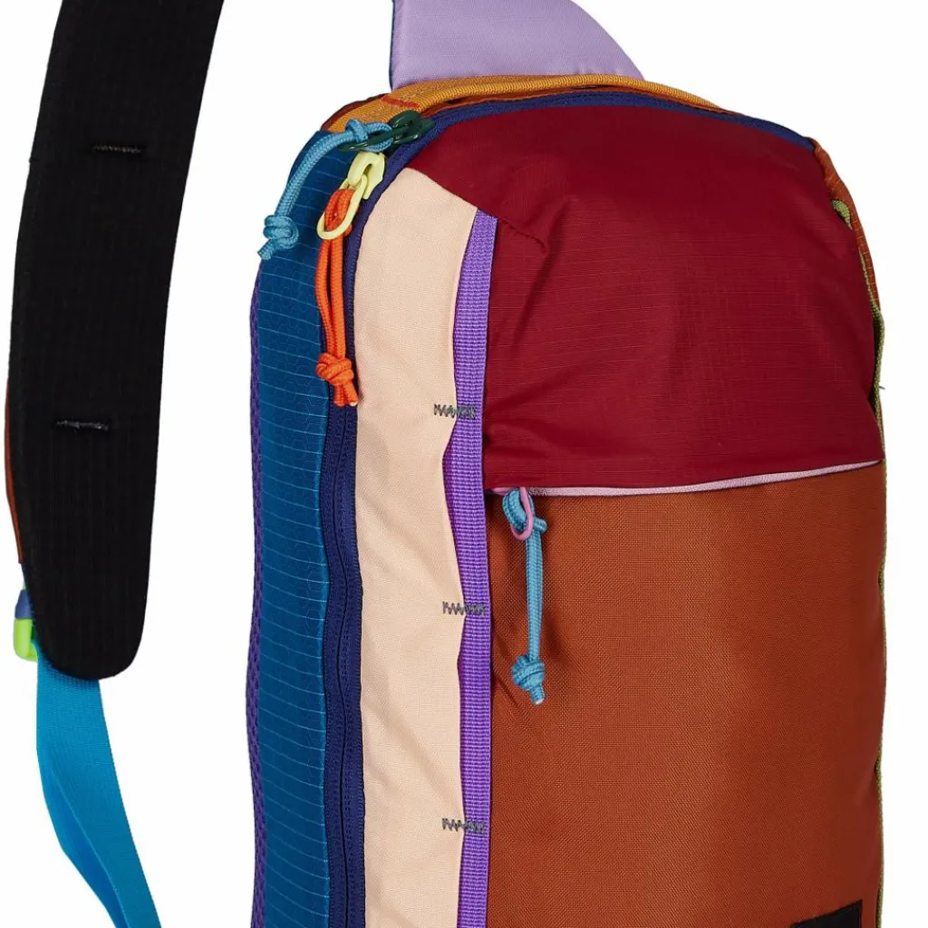 Die farbenfrohen Stoffreste, aus denen die Todo 8L Sling hergestellt ist, sorgen für gute Laune! Ganz in Cotopaxi Manier ist jede Slingbag ein Unikat.