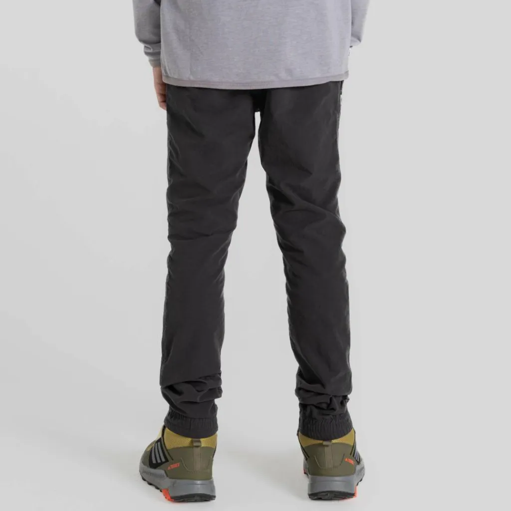 Die leichte Reisehose besteht aus recyceltem Polyamid und kann mit einem guten Feuchtigkeitstransport aufwarten. Kleine Entdecker:innen können also nach Herzenslust toben. Kommen sie ins Schwitzen, wird die Feuchtigkeit nach außen geleitet und die Kunstfaser ist flink wieder trocken. In dem bequemen elastischen Bund ist außerdem ein feuchtigkeitsleitendes Meshband verarbeitet, welches einen leicht kühlenden Effekt hat.